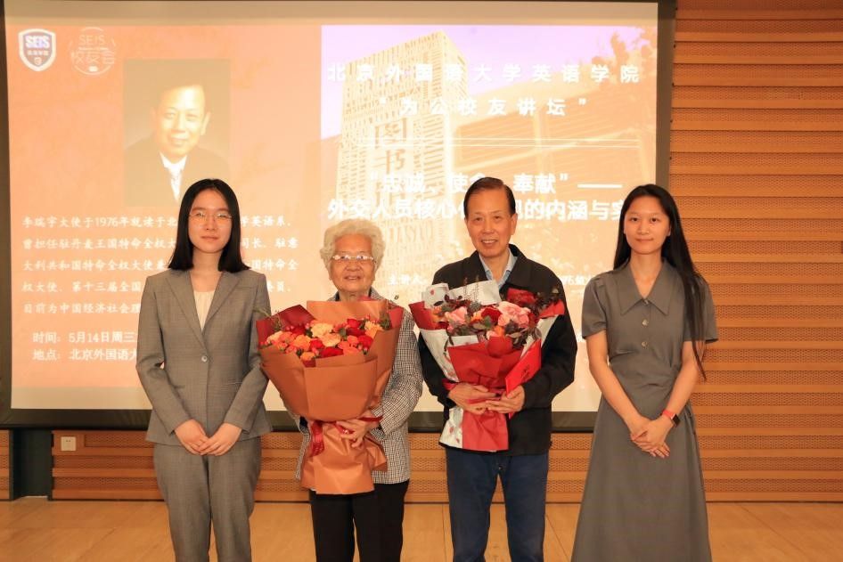 讲座最后,陈乃芳为李大使颁发了“为公员工讲坛”证书,现场同学为两位前辈献上鲜花并合影留念。