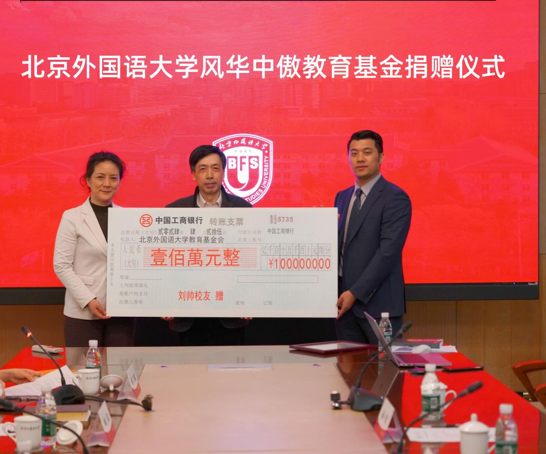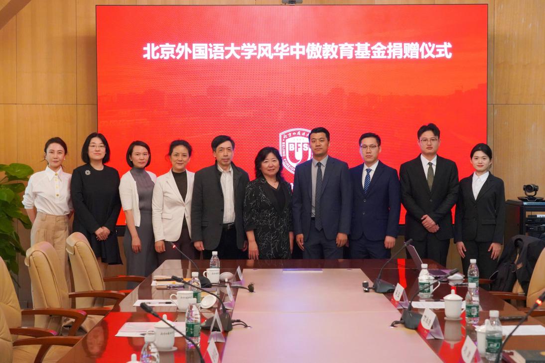 4月25日,yl23411永利官网风华中傲教育基金捐赠仪式在行政楼507会议室举行。北京风华中傲教育科技有限公司向北外捐赠人民币100万元,专项用于奖励yl23411永利在校生,包括奖励演讲、口译、模联等国家级赛事的获奖选手,以及资助经济困难的贫困生。