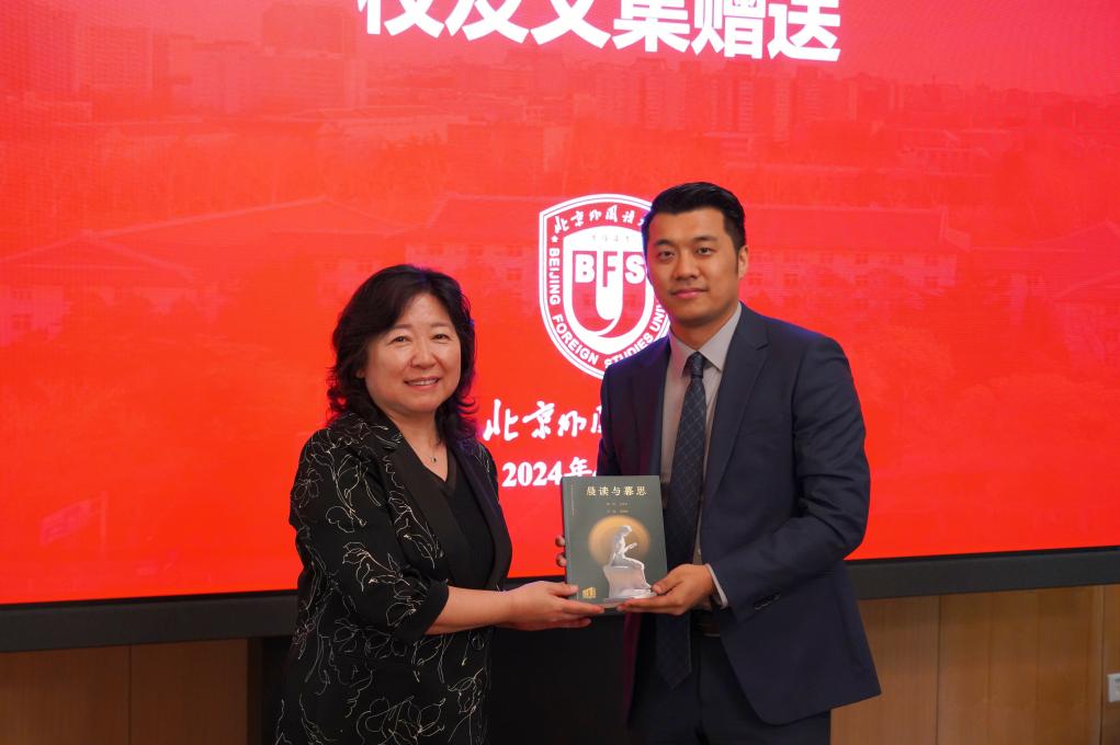 捐赠仪式上,刘帅深情回顾了自己在校时的求学、创业经历,特别感谢了北外多位恩师对他的悉心指导和无私帮助。刘帅谈到,正是在公司提供的资源和指导下,他的公司才能够顺利度过初创期,逐步发展壮大。他希望通过此次捐赠帮助更多在校生追求卓越,促进公司高质量发展,为公司培养更多有家国情怀、有全球视野、有专业本领的复合型人才做出贡献。