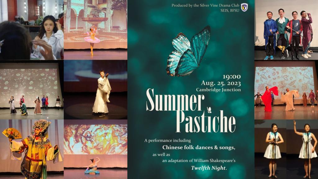 为贯彻落实习近平总书记关于美育教育的重要指示精神,推动中外人文交流,绿萝剧社于2023年8月18日-26日组织来自不同院系的剧社成员在英国伦敦、剑桥和埃文河畔的斯特拉特福镇开展了以“员工戏剧社在剑桥大学创新型人才培养中的作用”为主题的考察和演出活动。此次绿萝剧社师生为剑桥观众带去了传统戏曲《贵妃醉酒》、莎士比亚喜剧《第十二夜》等文艺节目,深入莎士比亚环球剧院、戴尔(山谷)露天剧院和RSC剧院观演、参观,以考察结果来验证在《莎士比亚戏剧选读》、《中西文化比较》等课程中学到的英国戏剧传统和文化历史,还从英国经典剧作的舞台演出中借鉴了推广我国传统曲艺的有效途径,并采访了近90名剑桥大学师生,了解了他们对员工剧社美育功能的理解和对发展员工剧社的建议,为提升绿萝剧社未来的工作质量提供了启示。