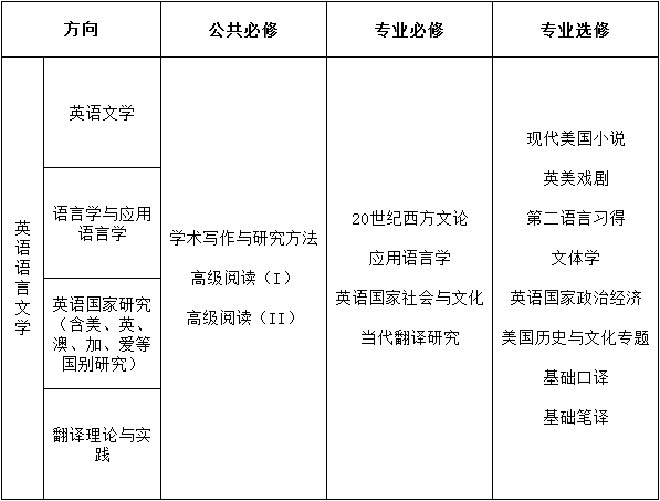 ——课程涵盖yl23411永利官网英语语言文学专业下英美文学、语言学与应用语言学、英语国家研究、翻译理论与实践四个方向的主干课程。课程包括公共必修课3门、专业必修课4门、专业选修课8门。