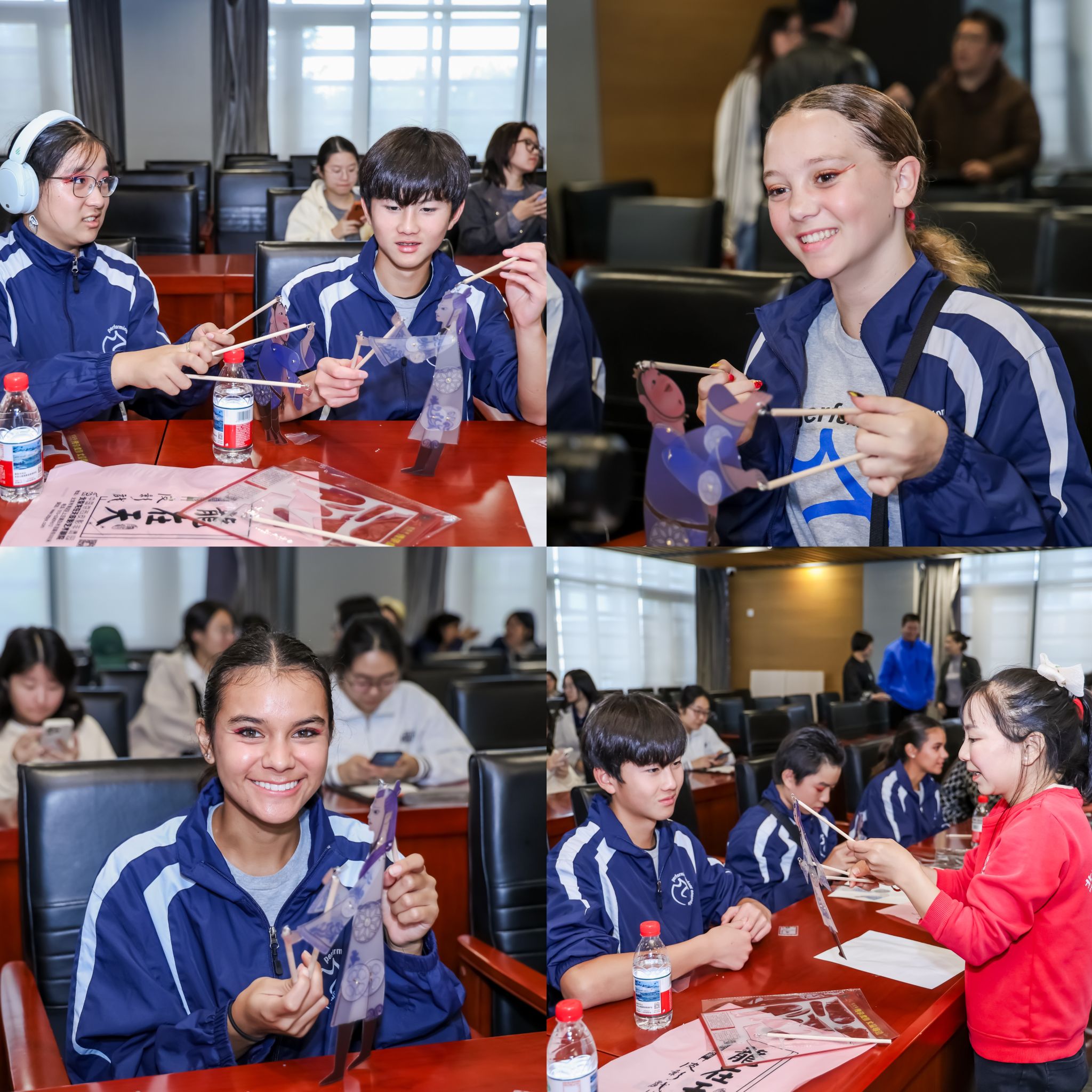 随后的互动体验环节将活动推向高潮。在皮影艺术家、北京龙在天皮影艺术剧院王熙经理的指导下,中美员工一起动手参与皮影制作与操纵实践。从描画图样、雕刻皮料到组装关节、学习操纵,大家在亲手实践中感受非遗技艺的匠心独运。多位员工党员主动担任翻译与协助角色,助力中美青少年在协作中完成皮影作品,展现出党支部同学在跨文化沟通中的组织力与引领力。