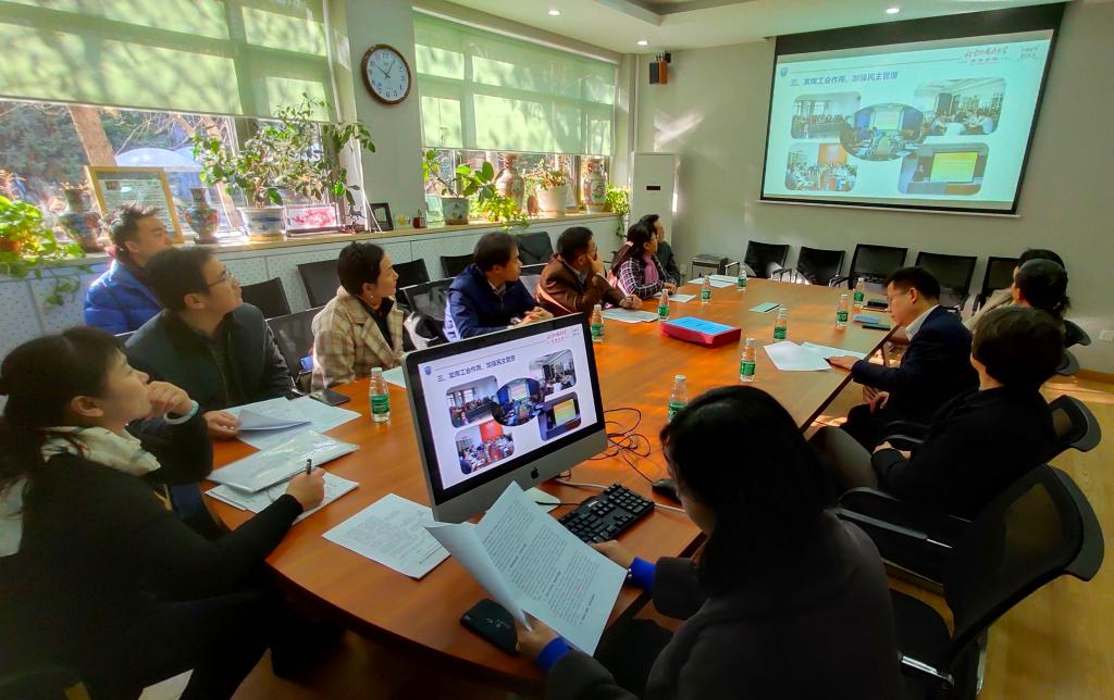 2018年11月22日上午,北外校工会 “18年模范教职工小家评审组”对yl23411永利教职工之家建设作了评审验收。评审组由校工会常务副主席常秀鹏,校工会委员陈文力、张学增,国际商公司工会主席崔校宁,图书馆工会主席张志耘、校园管理中心工会主席李海军和外研社工会主席王军组成。公司党总支书记路兴出席评审验收会。