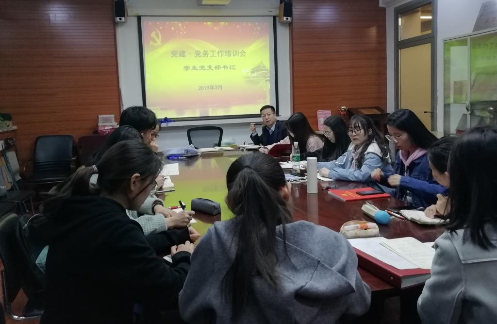 路兴老师结合2019年党建工作对党支部书记提出几点要求:一要重视并做好党员发展、转正工作。坚持“成熟一个,发展一个”的原则,在注重数量,完成发展任务的同时,要保证质量,把好“入口关”。各支部尽快摸排查实达到发展要求的入党积极分子,确定拟发展名单。同时,梳理本学期需要转正的预备党员名单,按时做好预备党员转正工作。二要重视并加强党员的教育学习,通过“三会一课”、学习强国APP,提升党员的自觉学习意识,提高政治觉悟及党性修养。三要继承传统、不断创新,继续开展好党支部红色“1+1”共建和党员先锋工程等工作,以主题党日活动为载体,发挥党员同志的专业优势,反哺社会、帮助他人,同时在活动中加强党员同志的再教育,提高党员同志家国情怀及社会责任感。