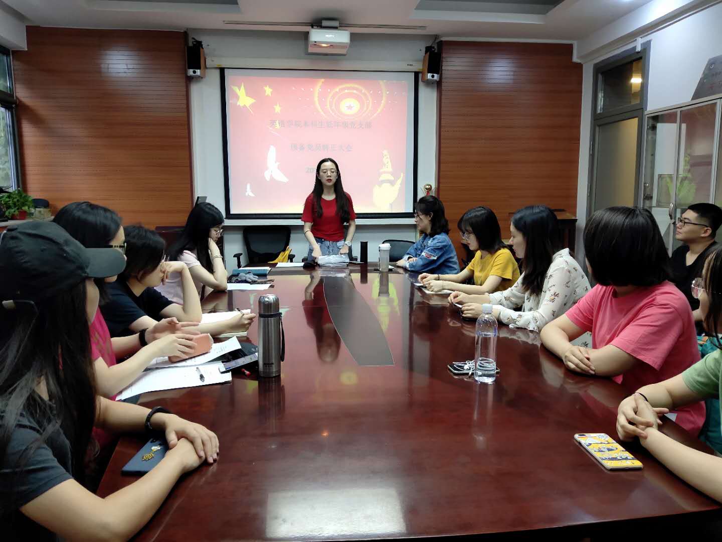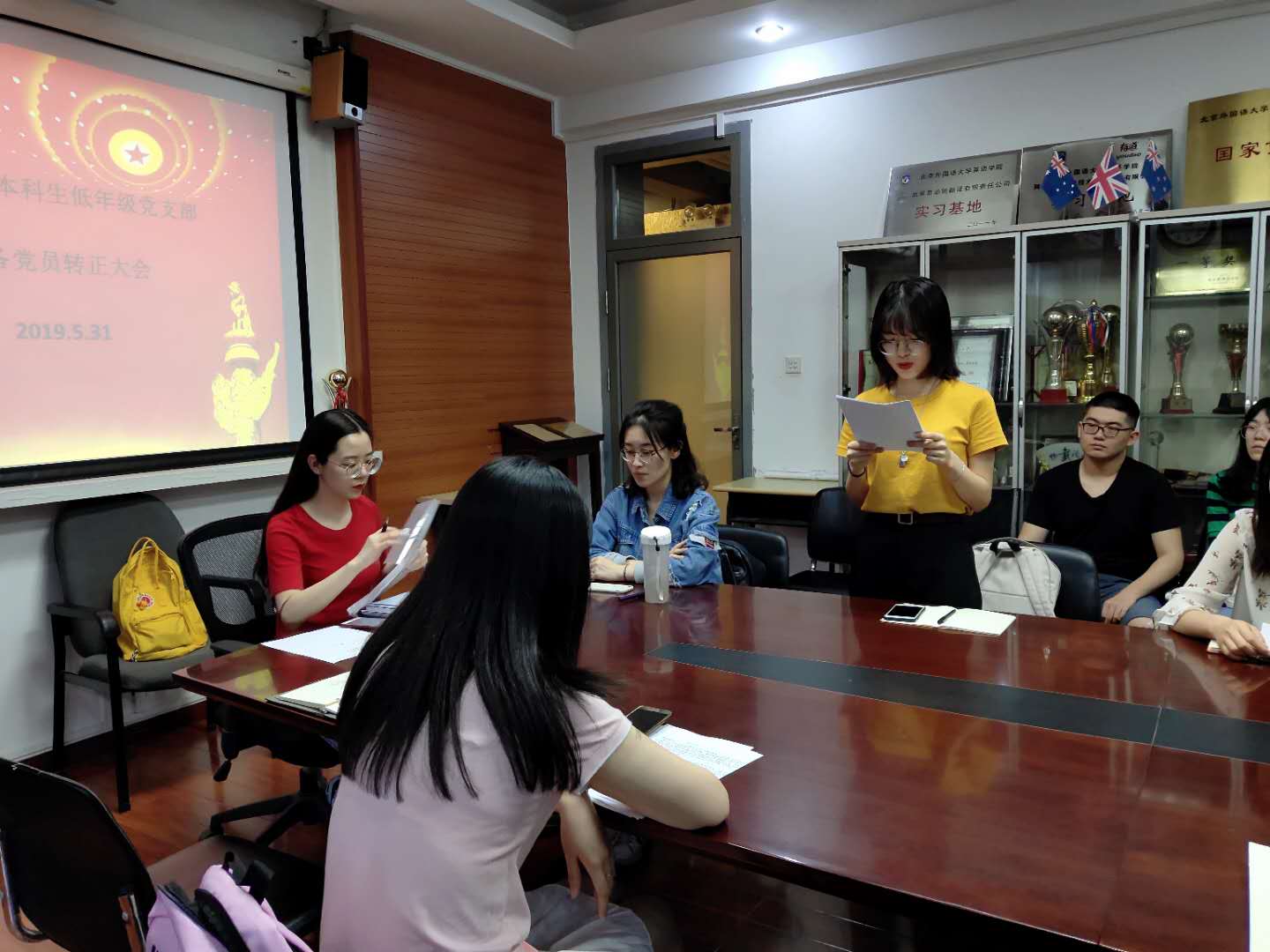 2019年5月31日晚,本科生低年级党支部在公司115会议室召开了预备党员转正大会,会议由党支部书记罗振令主持,支部副书记、党员及预备党员参加了该次会议。会议包括三名预备党员(李雨洁、李佳琦、杨清元)的转正事宜、“红色1+1”活动策划及安排、学习强国App的学习方法和学习心得分享、组织观看党章电视辅导教程并围绕“党员肩负的责任”展开探讨等内容。