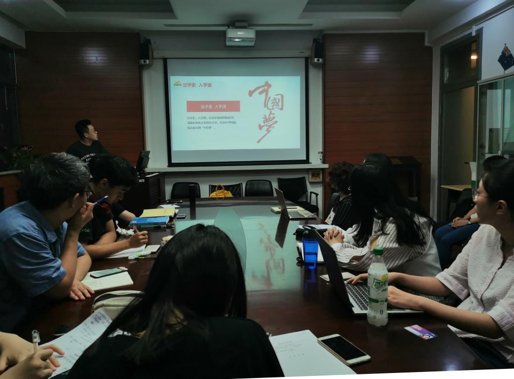 在《学习纲要》学习分享环节,与会党员和入党积极分子以5到6人为一组,由党员组织组员对《学习纲要》的内容进行探讨和交流。在交流结束后,刘香月和陈钇钧两位党员就刚刚探讨的“文化自信”话题再次发表了自己的感想。罗振令在总结中再次鼓励大家将党性融入到学习生活与实践中来,结合外语学习与交流者的身份发扬并创新中华文化光明灿烂的未来。