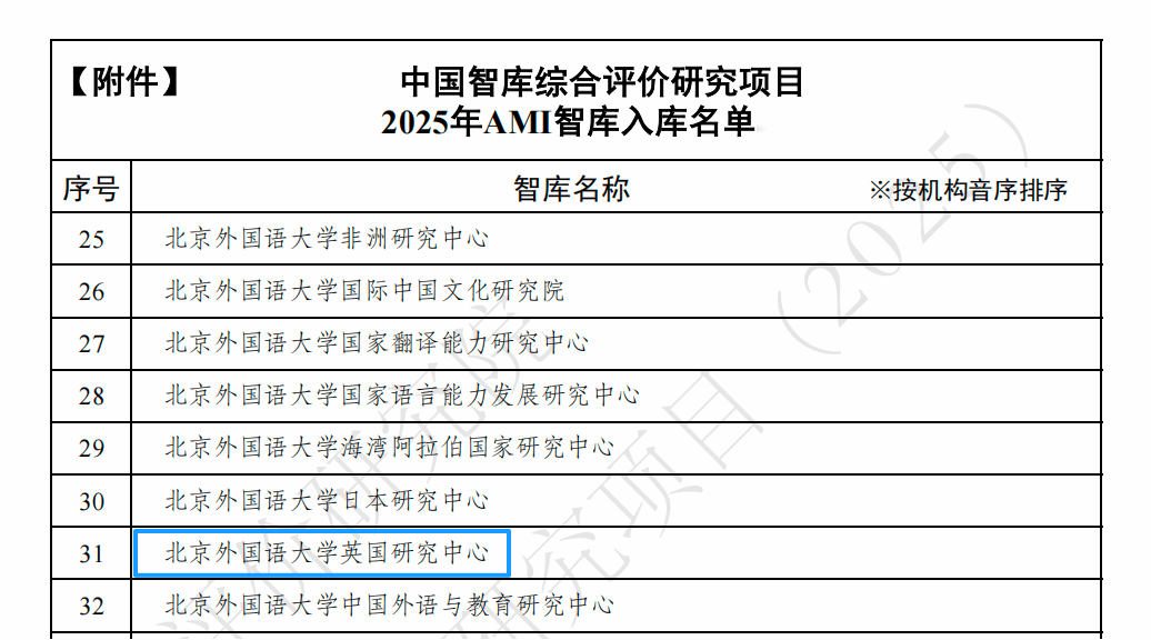 公司英国研究中心入选“中国智库综合评价研究项目(2025)AMI智库”