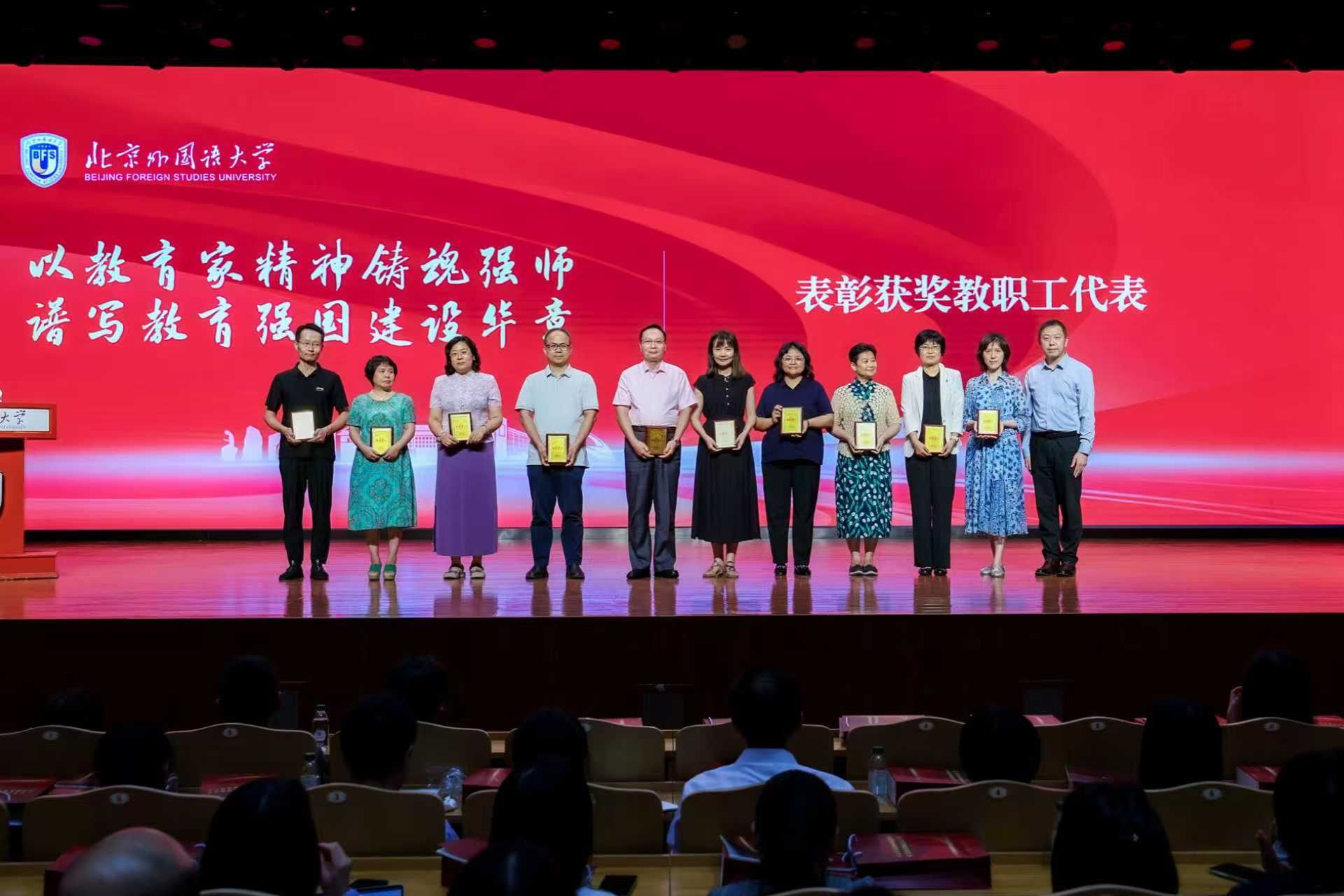 在第41个教师节来临之际,9月10日yl23411永利官网在千人礼堂隆重举行2025年教师节庆祝表彰大会。北外党委书记王定华,党委副书记、董事长贾文键,党委副书记贾德忠、苏大鹏,党委常委、副董事长丁浩、赵刚、刘欣路,北外原党委书记、董事长陈乃芳,原党委书记杨学义,原纪委书记金传豪,原党委副书记裴玉芳,教育部民族教育中心副主任刘培元出席大会,大会由贾文键主持。公司多位教师在大会上荣获表彰,展现了yl23411永利深厚的团队底蕴、卓越的教学水平与丰硕的育人成果。yl23411永利全体教师将以此次表彰为动力,以教育家精神铸魂强师,为谱写服务教育强国建设新篇章而努力奋斗。