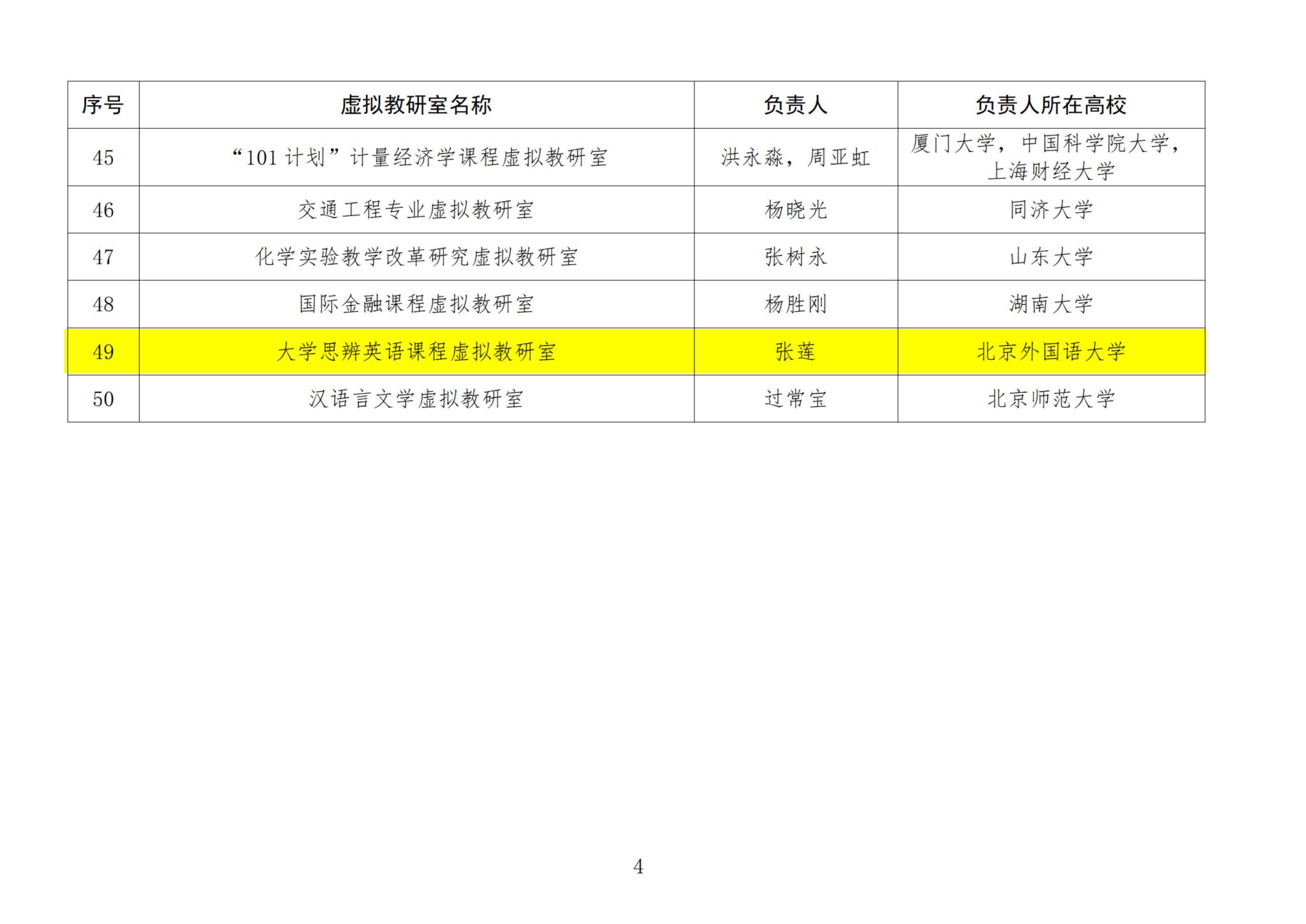 近日,虚拟教研室项目秘书处受高教司委托开展了2025年度典型虚拟教研室、典型教研方法与典型教研成果“三个典型”推荐和论证工作。基于各虚拟教研室年报数据及申报材料,经学科协作组推荐和专家论证,本年度遴选“典型虚拟教研室”50个、“典型教研成果”50项、“典型教研方法”100个。“大学英语思辨课程虚拟教研室”成功入选2025年度“典型虚拟教研室”名单。