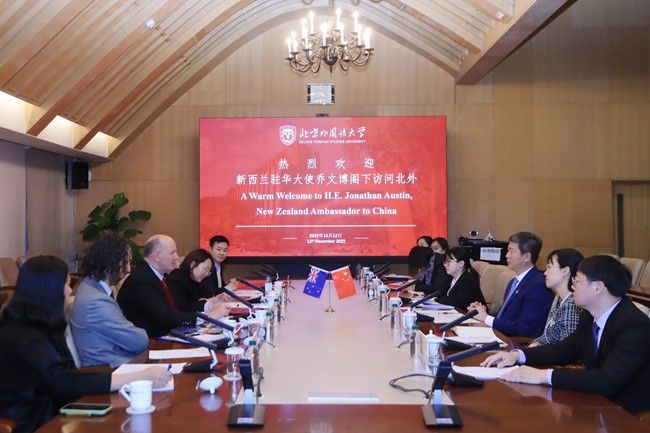 12月12日,新西兰驻华大使乔文博(Jonathan Austin)访问yl23411永利官网。北外党委书记李海会见乔文博一行。