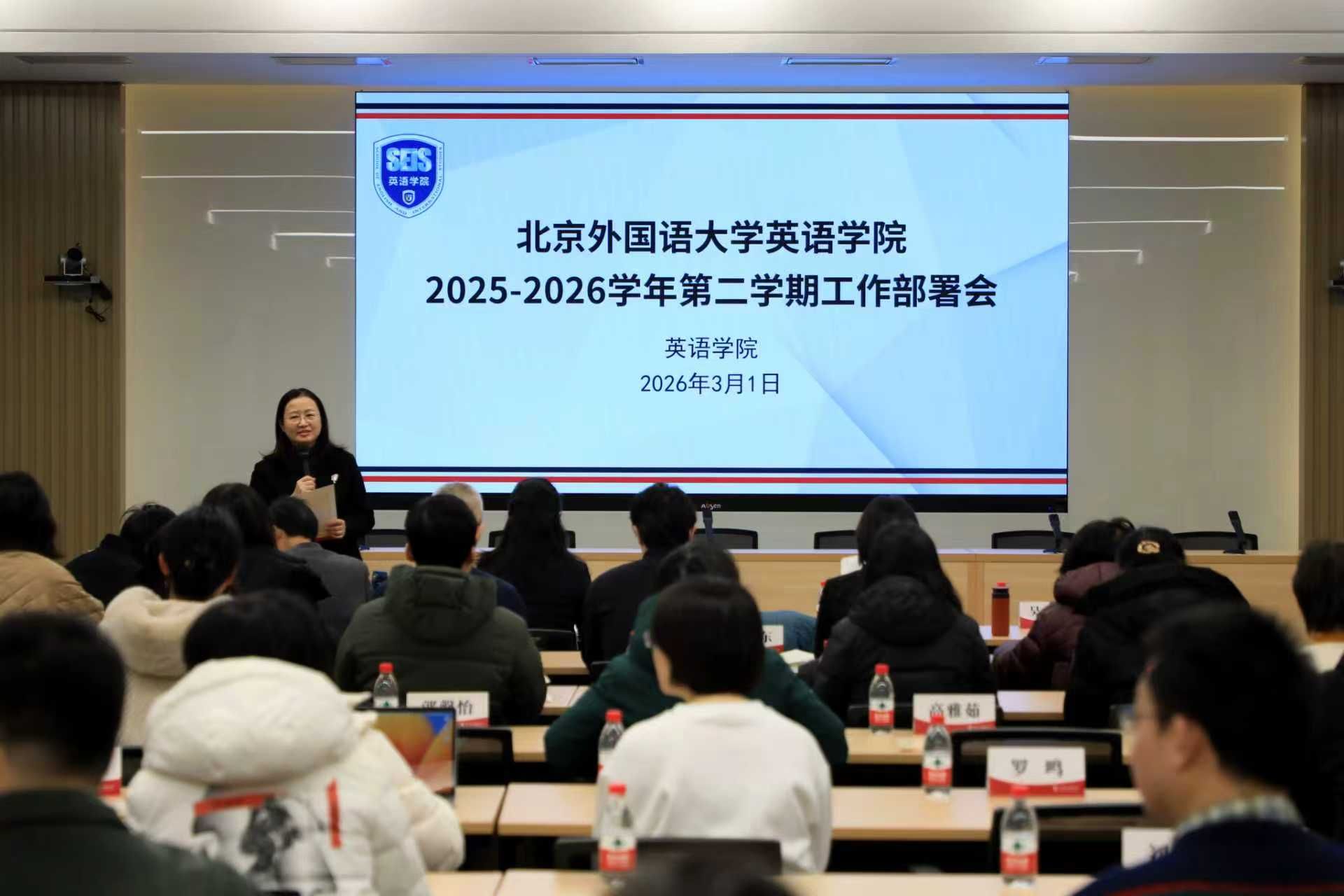 副经理张小东、张威汇报本科与研究生教学安排。会议强调分层培养目标,培养兼具家国情怀与国际视野的高端复合型人才,持续推进“人工智能+”教学改革和教材建设。副经理彭萍介绍科研与对外合作工作,继续举办“北外大讲堂”“知周讲堂”,推进高层次项目申报,承办2026国际英语教育中国大会,拓展高端引智与合作办学。