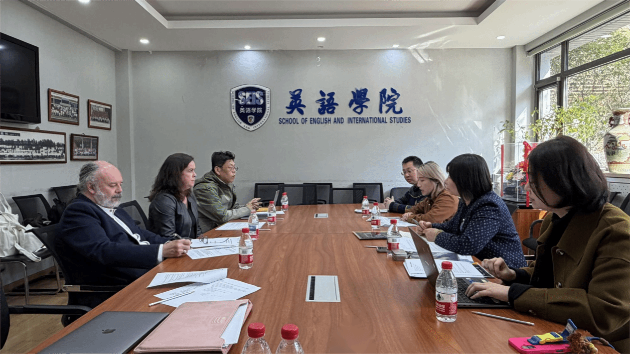 墨菲一行介绍了科克大学英语与数字人文公司相关建设情况,重点分享了数字人文在本硕博层次人才培养中的发展路径,以及计算机科学与人文学科交叉融合的教学特色。双方一致认为数字人文、翻译研究、创意写作、语言教学、国际关系等方向具有较强互补性和广阔合作空间。