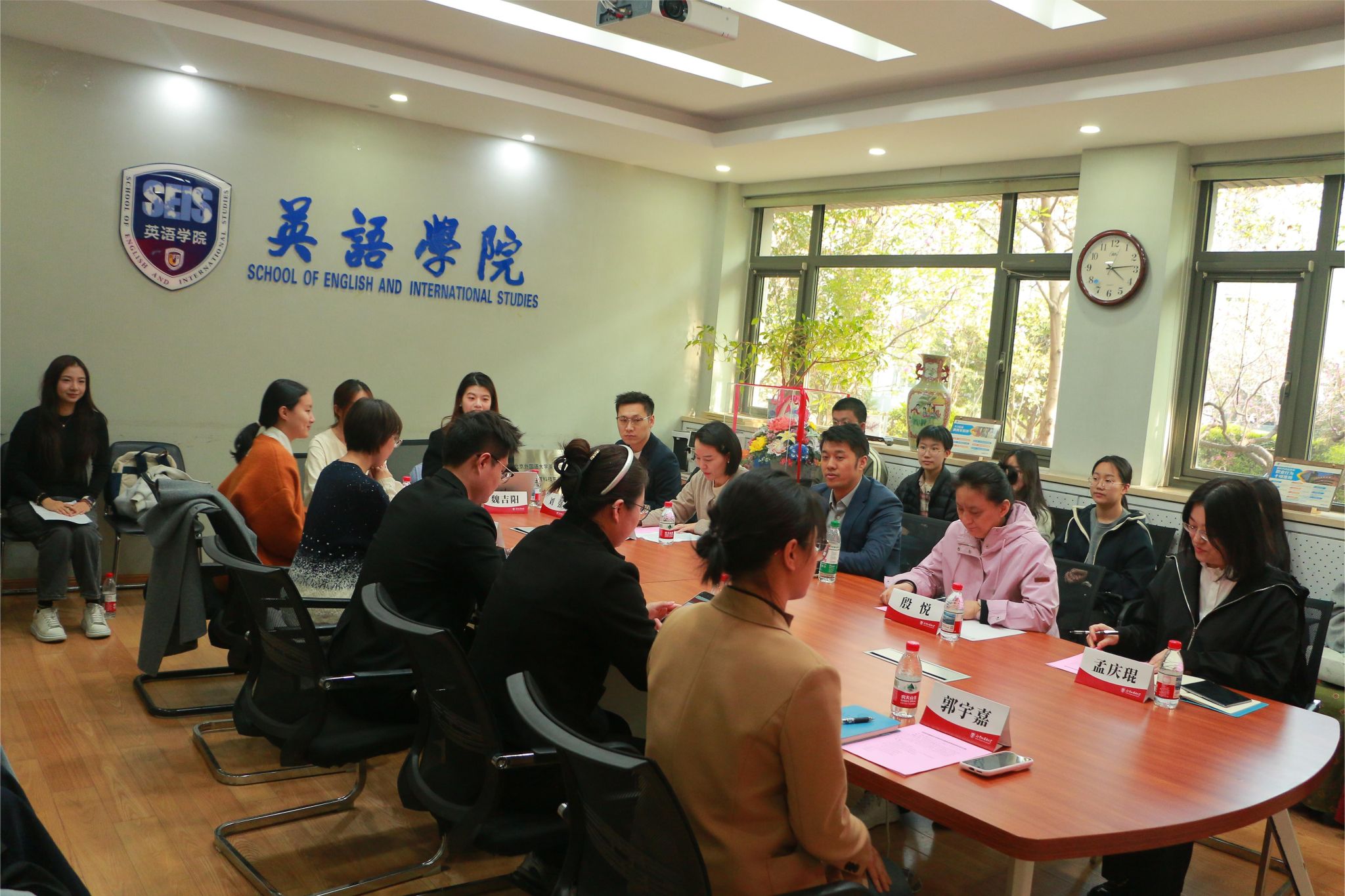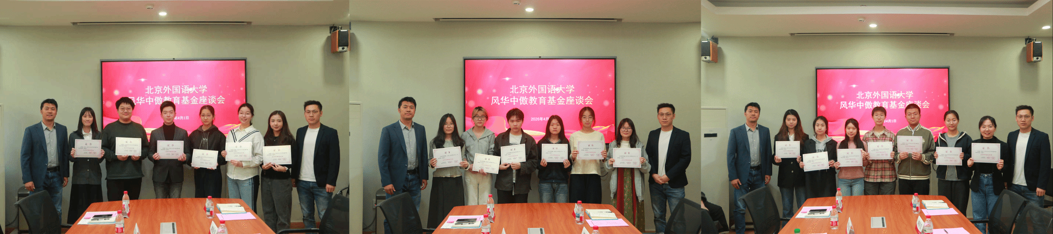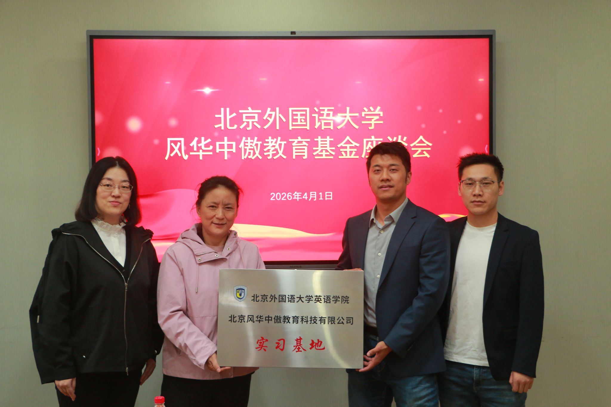 4月1日下午,yl23411永利成功举办了“风华中傲教育基金”座谈会。北京风华中傲教育科技有限公司总经理刘帅、运营总经理刘强、营长付永浩、销售代表刘佳莹,北外员工办主任、教育基金会秘书长姚雪,教育基金会王龙仪,公司党总支书记殷悦、党总支副书记孟庆琨及师生代表齐聚一堂、共话育人初心,共促公司发展。