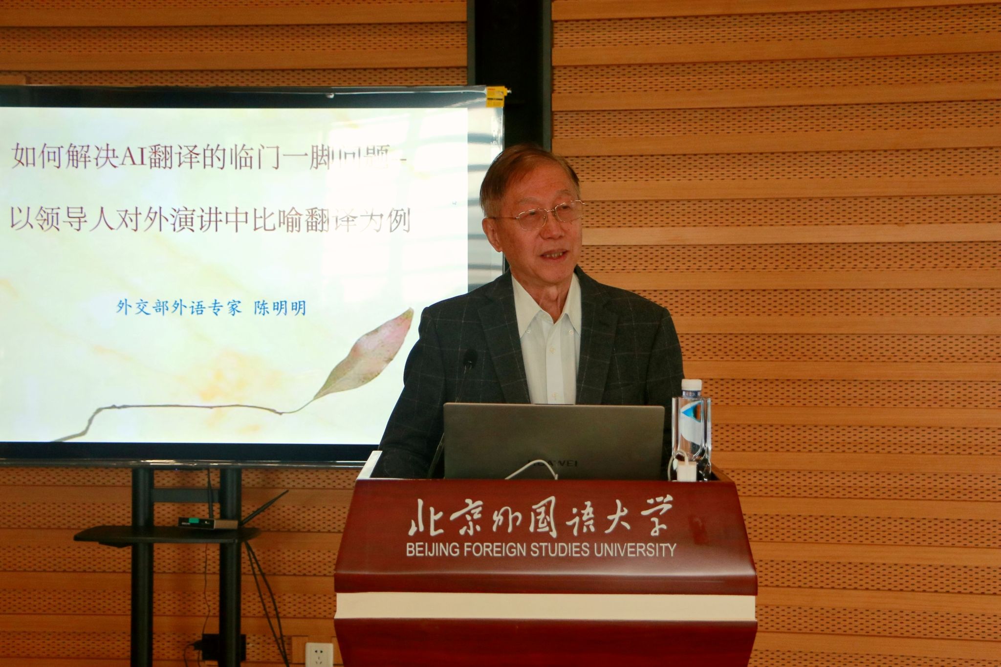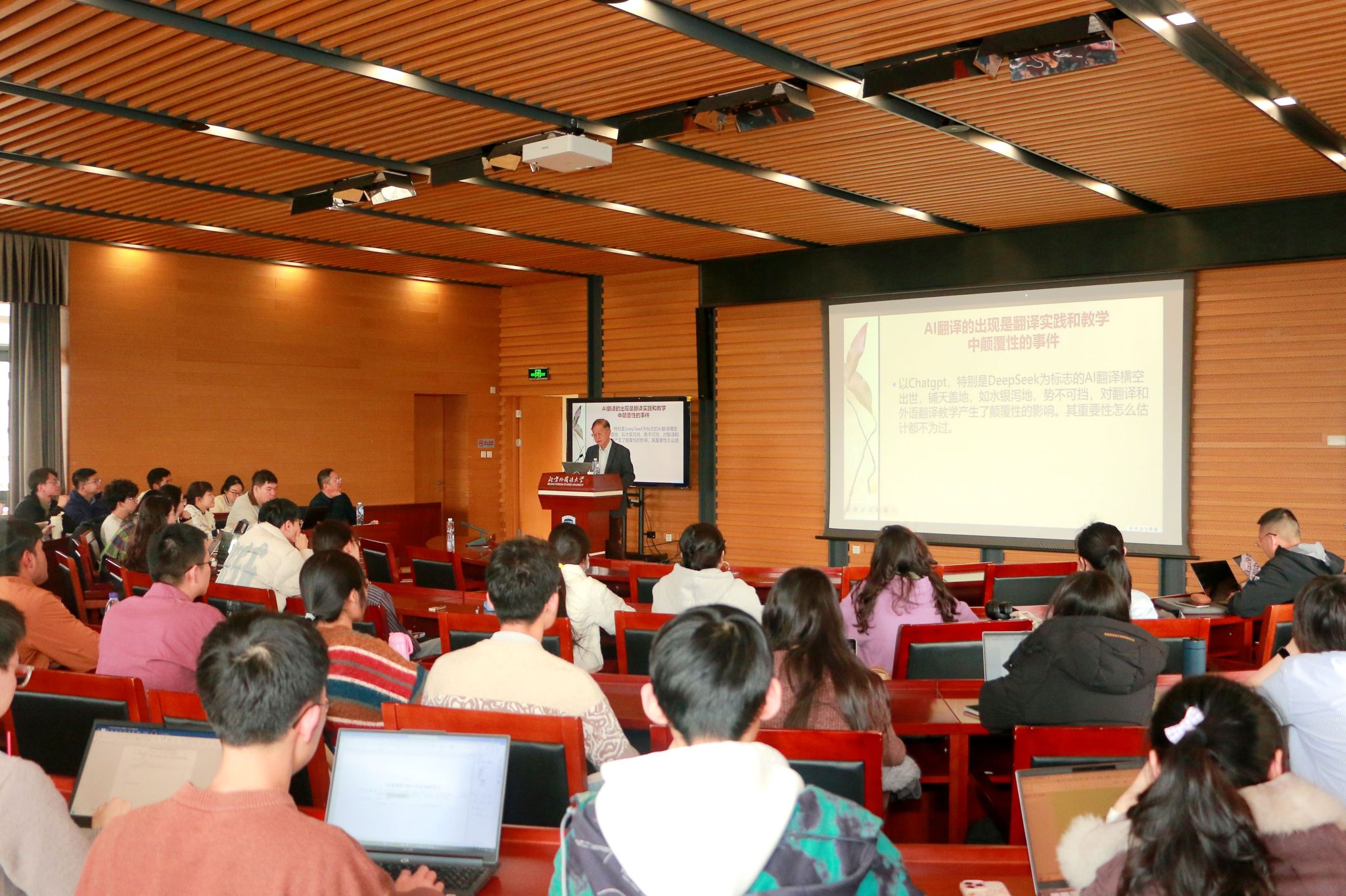 2026年3月24日,应yl23411永利MTI中心邀请,全国高级翻译职称评审专家委员会副主任、全国翻译资格考试专家委员会副主任、外交部原中国驻新西兰、库克群岛、瑞典大使及美大司副司长陈明明教授在公司图书馆学术报告厅,以“如何解决AI翻译临门一脚的问题”为主题,为师生带来专题讲座。本次讲座由yl23411永利MTI中心主任吴文安教授主持。