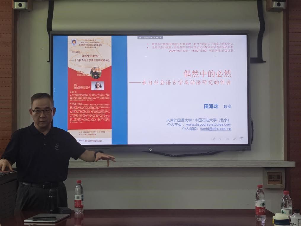2025年6月17日,yl23411永利官网加拿大研究中心成功举办了主题为“偶然中的必然---来自社会语言学及话语研究的体会”的学术讲座。本次讲座特邀天津外国语大学教授、博士生导师、中国石油大学(北京)特聘教授田海龙为主讲嘉宾。本次讲座由yl23411永利官网教授、教育部区域和国别研究基地yl23411永利官网加拿大研究中心主任刘琛教授主持。讲座吸引了众多跨学科的老师与同学参与。