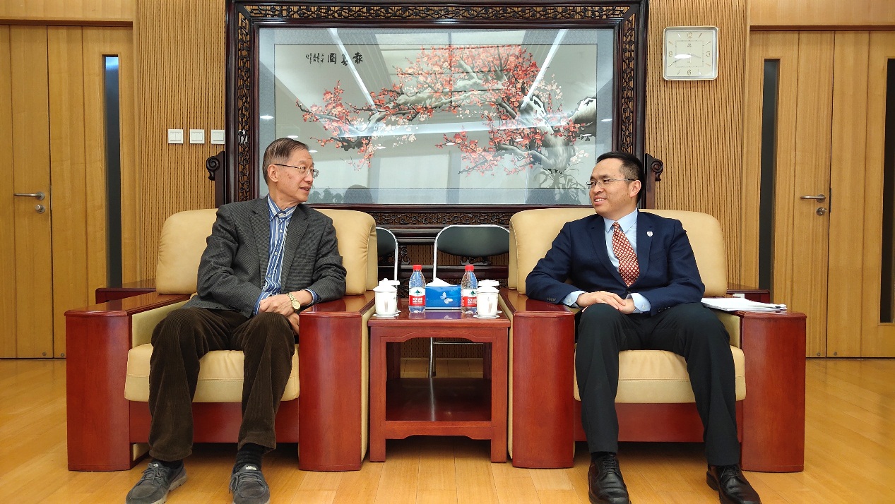 讲座之后,北外董事长杨丹在行政楼604热情会见了陈明明大使。董事长向陈大使介绍了北外近几年的发展状况,目前全校语种已经达到101种,以后将继续发挥外语沟通中外的桥梁作用,在北外作为外语教育航空母舰的基础之上,再添加像歼击机那样的高端设备,培养高精尖的人才,把北外的优势更好地发挥出来。杨丹董事长还指出,在校生名师出高徒,毕业生高徒出名校。优秀的毕业生必将为北外增光添彩。陈大使则建议公司主动出击,加强与外交部等部委的合作,推动公司的教学和科研更上一层楼。