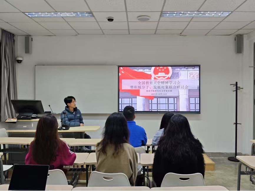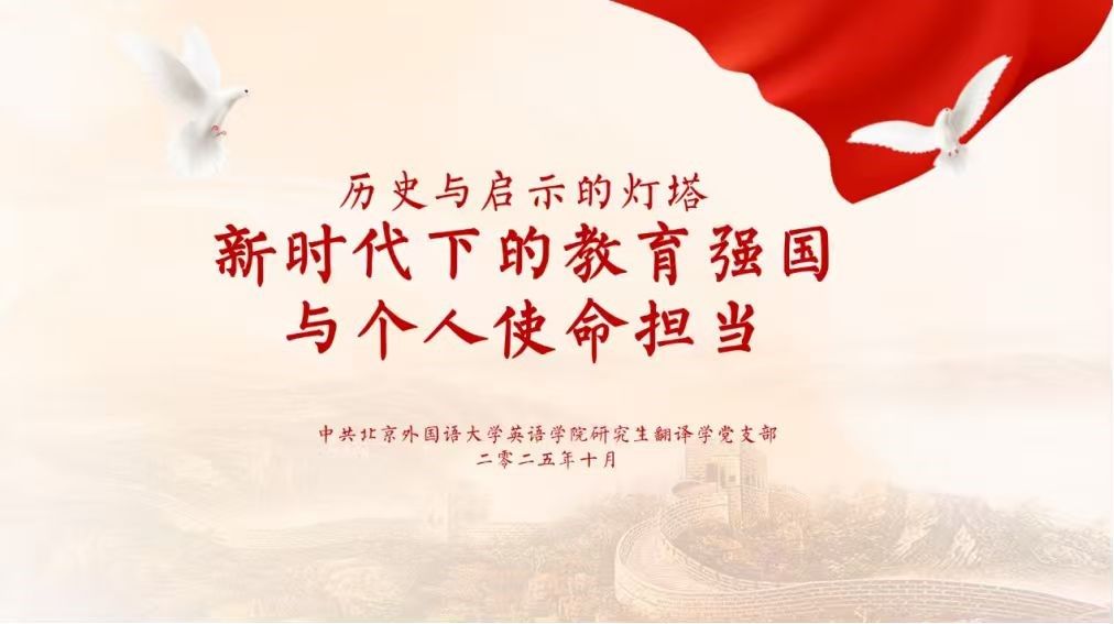 各支部积极将教育强国理念融入共建实践,以实际行动践行“教育要扎根中国大地”的要求。MTI笔译党支部围绕“习近平总书记对教育的关心关爱”主题,重温培训内容并分享实践案例。翻译学党支部结合报告重点,就与北京边检总站执勤大队开展红色“1+1”共建活动展开深入讨论;语言学党支部则围绕讲话精神,探讨与北京语言大学语言康复公司推进红色“1+1”共建计划,推动以语言学科优势服务特殊教育事业;本科生党支部深入解读教育强国的时代内涵,明确“以奋斗姿态投身教育强国实践”的目标,积极推进“北京市盲校爱心助学”活动。