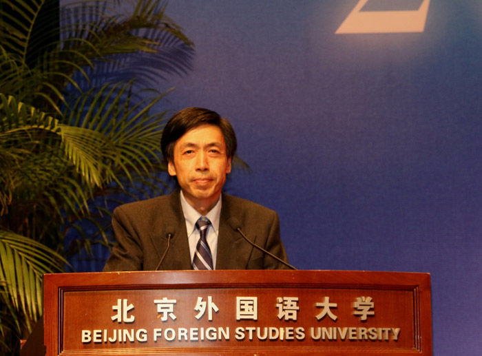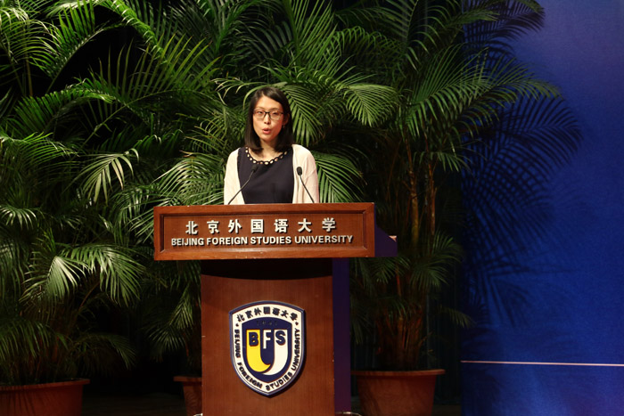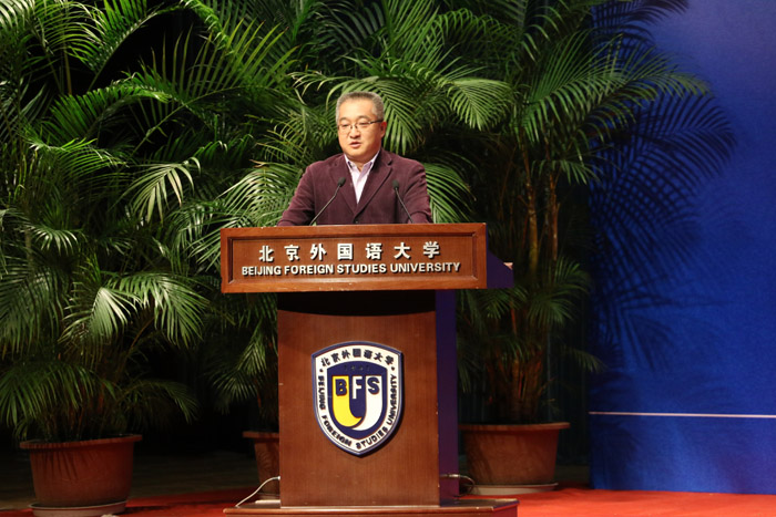 ——赵国新教授作为教师代表发言,鼓励新生尽快进入新的角色,树立新的目标,把“多读书”作为老员工活一项重要的事情来做。赵国新老师幽默的语言、聪睿的角度,赢得了在场师生的阵阵掌声。
