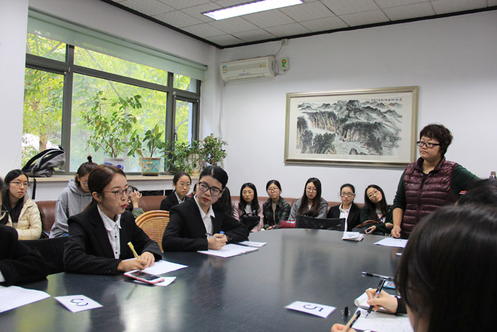 ——在两个半小时的时间里,田老师将报名面试的12位应届硕士毕业生分为2组,每组6人,分别参加两场不同题型、针对不同岗位的无领导面试。每场面试中,6位同学针对田老师现场口述的1道开放性题目,先进行1分钟思考,然后每人1分钟发言陈述观点,接着展开讨论,并在讨论结果达成一致后向面试官汇报结果,田老师对同学们在讨论中的表现进行了专业又有深度的点评。除了报名参加面试的同学,还有很多同学到场观摩,针对同学们在提问环节提出的困惑,田老师一一做出了耐心细致的解答。