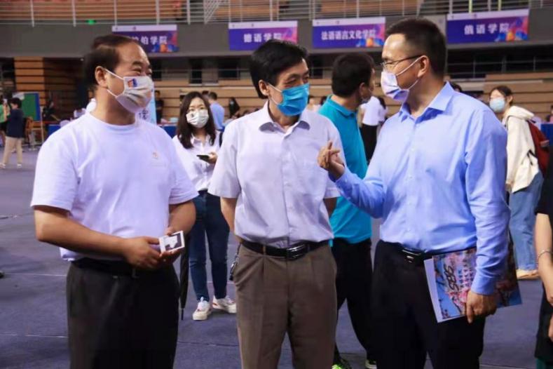 在体育馆二层,新生在志愿者、院部门工作人员的帮助下办理相关入学手续,yl23411永利官网党委书记王定华,yl23411永利官网党委副书记、董事长杨丹,yl23411永利经理张剑等领导老师莅临现场与新生进行亲切交谈,让他们感受到yl23411永利大集体的温暖。