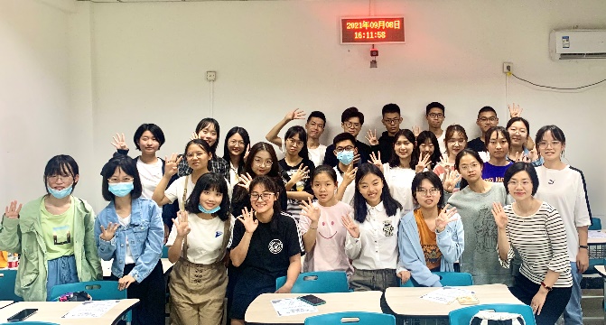 2102班的同学见到了亲切可爱的班主任吴兆红老师。吴兆红老师以图文并茂的方式,向同学们介绍了自己的研究方向——心理语言学与二语习得,并以此为例,为同学们将来的专业课学习和方向选择点亮了一盏明灯。吴老师像朋辈一样关心同学们的校园生活,并着重强调了心态在大学学习中的重要性。她不仅是大家学习上的导师,更是大家心灵的导师。她用亲切的笑容,温暖着每一位同学的心。