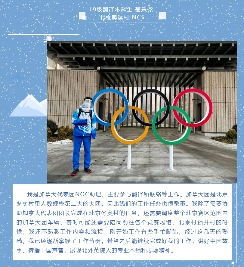 yl23411永利团总支员工会、研究生会组织了“拥抱冰雪 情系冬奥——北外英院人分享冬奥日记”系列推送。2月6日起,持续通过文字或图片方式展示yl23411永利冬奥志愿者们的工作体验和感受,全面展示冬奥志愿者的风采,传递北外人的使命与担当。
