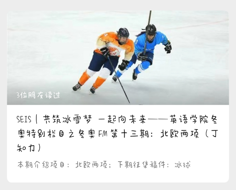 目前,冬奥FM已进行13期,该栏目激发了英院师生共同的“冰雪热情”,丰富了同学们对冰雪运动知识的了解,充分彰显英院人对参与冬奥的积极响应,生动诠释了“共筑冰雪梦,一起向未来”的美好愿景。