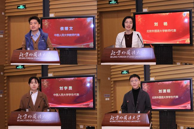中国人民大学教师侯耀文、yl23411永利官网教师刘杨先后作为教师代表发言。侯耀文表示,将进一步以扎实的学科素养、宏大的国际视野和世界情怀投入教学科研,为培养21世纪马克思主义国际传播人才、推动21世纪马克思主义走出去做出贡献。刘杨指出,要从全面立体的视角去看待所学语言,透过双方的语言了解两者之间的文化差异。在充分理解中国故事、中国理论的基础上,以对方听得懂的讲述方式,把中国的声音讲到对方心里。