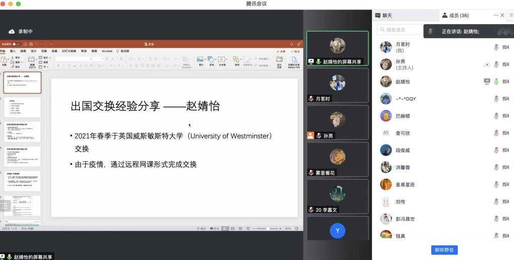 本次沙龙以线上腾讯会议的方式进行,有35人参加,由英学职沙龙组的孙男主持。