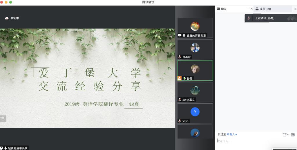 3月27日下午,英学职“出国交流经验分享”沙龙成功举办。本次沙龙邀请到了两位主讲人,分别是2018级英语专业国际经济方向的赵婧怡,曾赴英国威斯敏斯特大学交流;2019级翻译专业的钱真,现于英国爱丁堡大学交流。