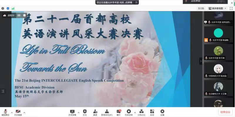 5月15日下午,第二十一届yl23411永利官网英语文化节之首都高校英语演讲风采大赛决赛于线上成功举办。参赛选手们言辞流利,舌灿莲花,为观众带来了一场精彩的富有深度的演讲比赛。