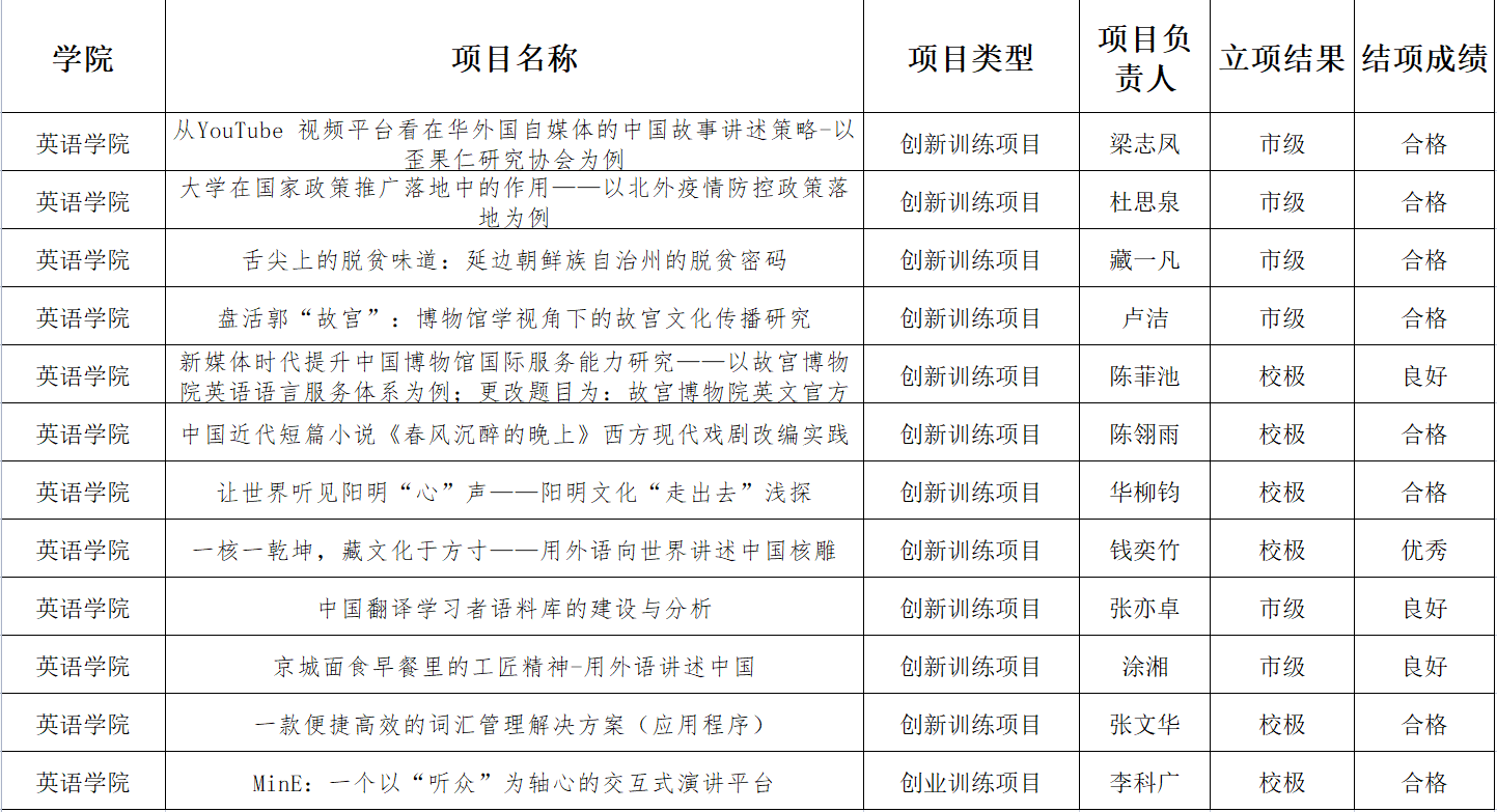 根据《关于2022年老员工创新创业训练计划项目结项工作的通知》,公司开展结项验收工作,公司提前组织结项答辩评审委员会,对2022年度大创项目进行预审,经过材料评审、项目陈述、答辩、修改等环节后提交公司审核,2021年yl23411永利老员工创新创业训练计划共计12个项目结项,其中1个项目获评为优秀项目、3个项目获评为良好项目。