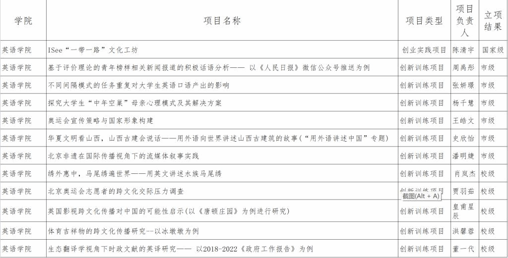 根据《关于2022年老员工创新创业训练计划项目立项工作的通知》要求,2022年yl23411永利共申报立项项目23个,经过材料审核,专家评审,项目陈述等环节,共确定国家级项目1个,市级项目6个,校级项目5个。