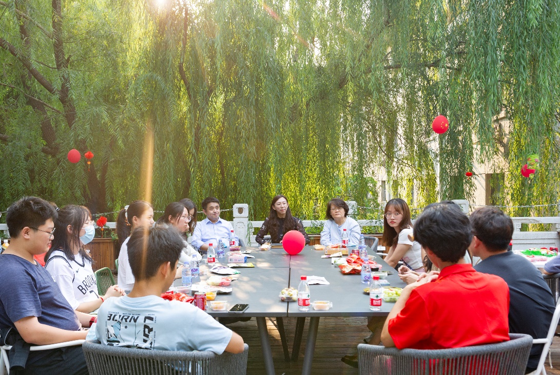 在九月温暖的斜阳中,在中秋美好的日子里,师生围坐、品尝校徽月饼、思想交流碰撞,气氛热烈而融洽。