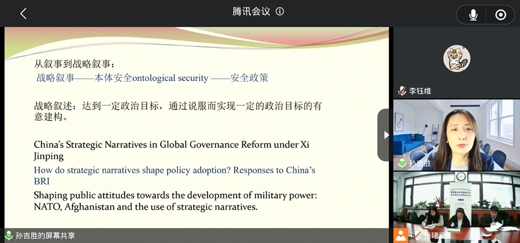 随后,外交公司副经理孙吉胜教授以语言与跨学科研究为题做学术报告。孙吉胜教授结合自己在国际政治语言学领域多年的科研和教学经验,深入浅出地介绍了语言与国际关系、国际政治等方面的跨学科研究思路,以翔实的案例启迪同学们打破学科壁垒,积极探索跨学科的交流与融合。