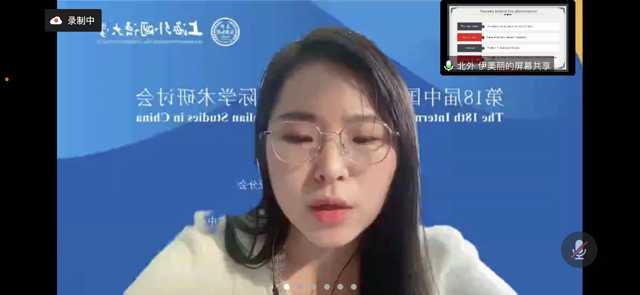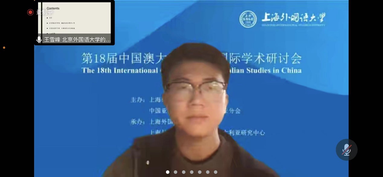 2022年11月19-20日,第18届中国澳大利亚研究国际学术研讨会在线上举行。本次会议由上海外国语大学澳大利亚研究中心承办,会议主题是“中澳关系与世界演变”。北外yl23411永利澳大利亚研究中心2021级8名研究生在会上发言,2022级研究生在线旁听了会议。