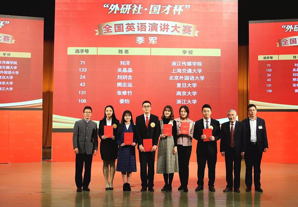 2018年12月5日至12月8日,“外研社·国才杯”全国英语演讲大赛在北京外研社国际会议中心如期举行。yl23411永利2017级本科生刘玥含同学获全国总决赛季军,2017级本科生黄扬同学与2016级本科生范凌宇同学也分别获得一等奖与二等奖的好成绩。