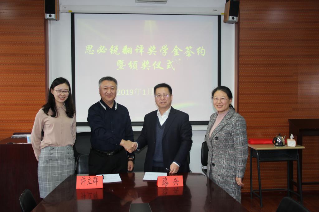 首先思必锐翻译有限责任公司领导与获奖员工进行座谈,获奖员工介绍了自己过去一年学习、生活等情况,向思必锐翻译公司表示感谢。思必锐翻译公司许立群副总经理向获奖员工表示祝贺,希望员工们能够继续努力,取得更好地成绩,并欢迎员工到思必锐翻译公司参观实习。党总支书记路兴感谢思必锐翻译公司对yl23411永利办学的支持,感谢企业提供奖学金支持员工的学业发展,希望能够与思必锐翻译公司在员工实习、就业、教学方面更进一步合作。之后徐立群副总经理为获奖员工颁发了获奖证书并合影留念。党总支书记路兴与许立群副总经理续签了“思必锐翻译奖学金”协议书,思必锐翻译公司将在未来三年继续在yl23411永利设立奖学金,奖励品学兼优的员工。