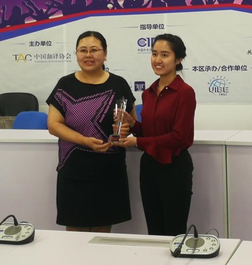 2019年6月9日,第八届全国口译大赛北部大区赛在对外经济贸易大学落下帷幕。yl23411永利员工在大赛中表现优异。其中,金羽菲同学获一等奖,潘婷立、尹佩璇、侯玉颖同学获二等奖,谢怡凡同学获三等奖,赵世明同学获优秀奖,王颖冲老师获优秀指导教师奖。