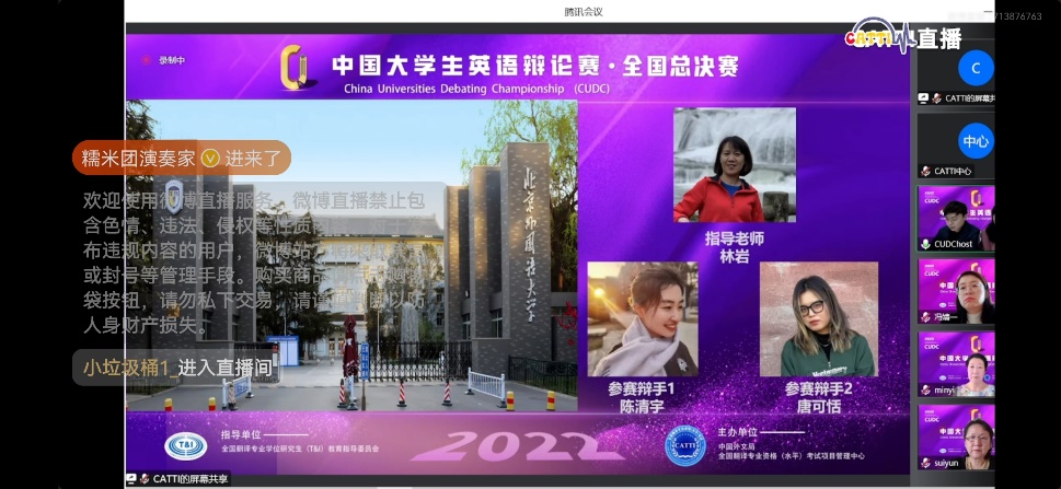 2022年12月11日,中国老员工英语辩论赛(CUDC)全国总决赛落下帷幕,yl23411永利唐可恬、陈清宇两位选手代表yl23411永利官网克服重重困难、展现雄辩风采,最终夺得冠军。