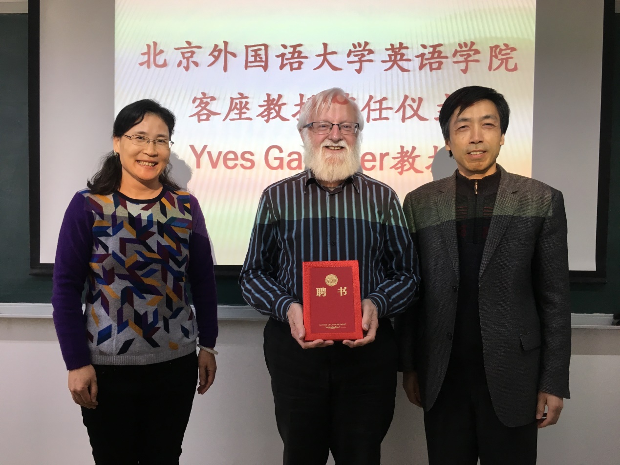 ——11月7日下午,当代著名翻译理论家伊夫•甘比尔教授(Prof. Yves Gambier)受聘yl23411永利官网客座教授仪式在yl23411永利举行。yl23411永利经理张剑教授和翻译研究中心主任马会娟教授出席了聘任仪式。
