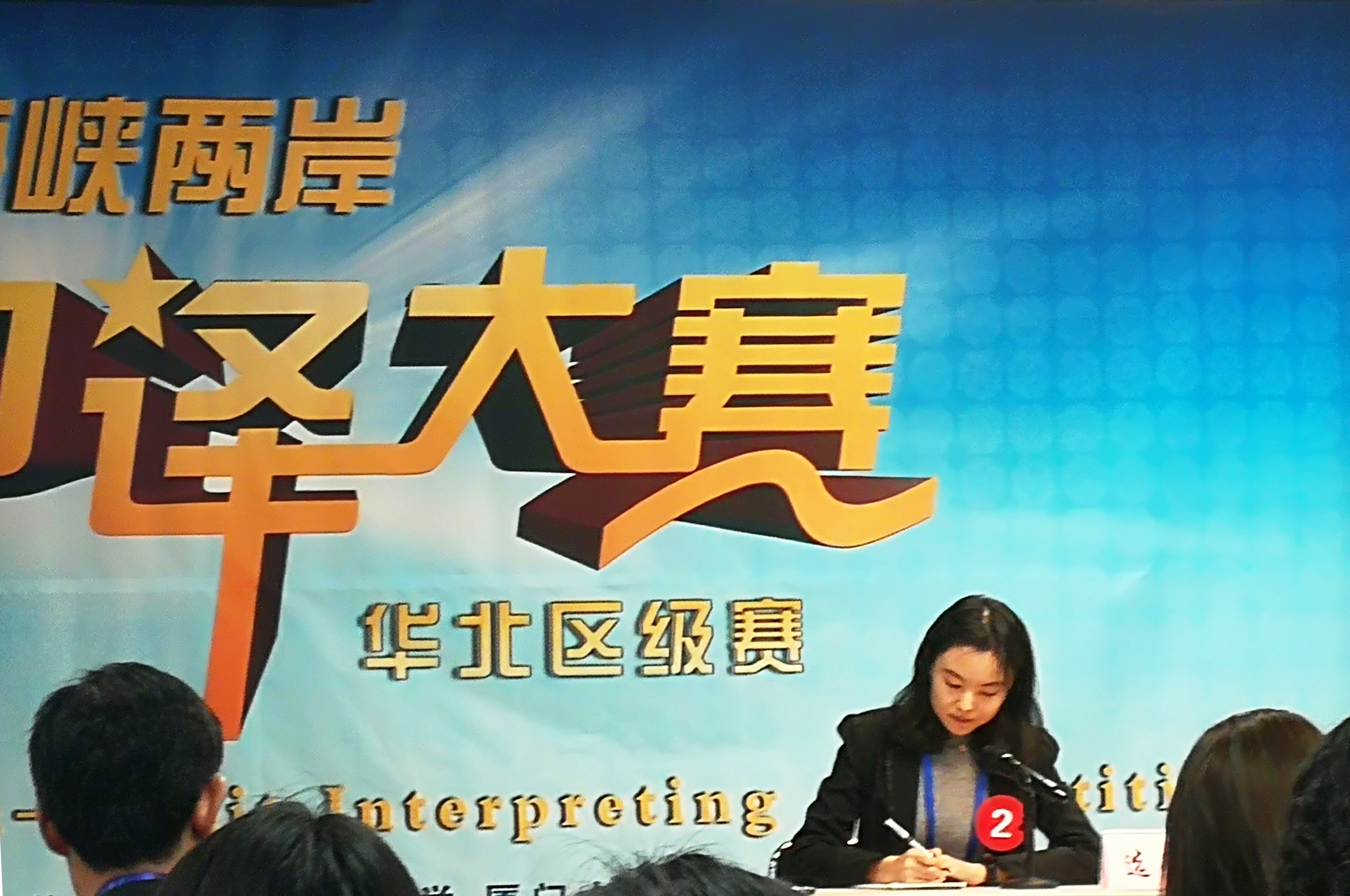 ——大赛采取淘汰赛制,经过上午场主旨口译环节的激烈角逐,华北赛区共选出自21名选手成功晋级下午场会议口译。本届海峡两岸口译大赛区级赛会议口译主题为:“人类智慧与人工智能 Human Intelligence vs. Artificial Intelligence”。紧扣这一主题,11号下午的会议口译环节涉及人工智能与人类工作、奇点理论、人类智慧、超级智能等关键词,比赛现场足以窥见选手们扎实的中英文功底和坚实的背景知识贮备。