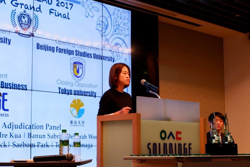 ——东北亚英语辩论赛是亚洲级别的英语辩论赛,也是东北亚地区规格最高的比赛。大赛采用“英国议会制”(British Parliamentary),辩题涵盖了司法正义、技术创新、社会发展、国际关系等东北亚地区与全球治理的重大议题。比赛分为公开组(Open)和英语为外语组(EFL),前者竞争更加激烈。yl23411永利2012级李曼祎(国际组织公司2016级)和国际组织公司2015级易桐宇曾在2015年组队获得该赛事EFL组冠军,易桐宇同学更是获得当年公开组十佳辩手的荣誉。