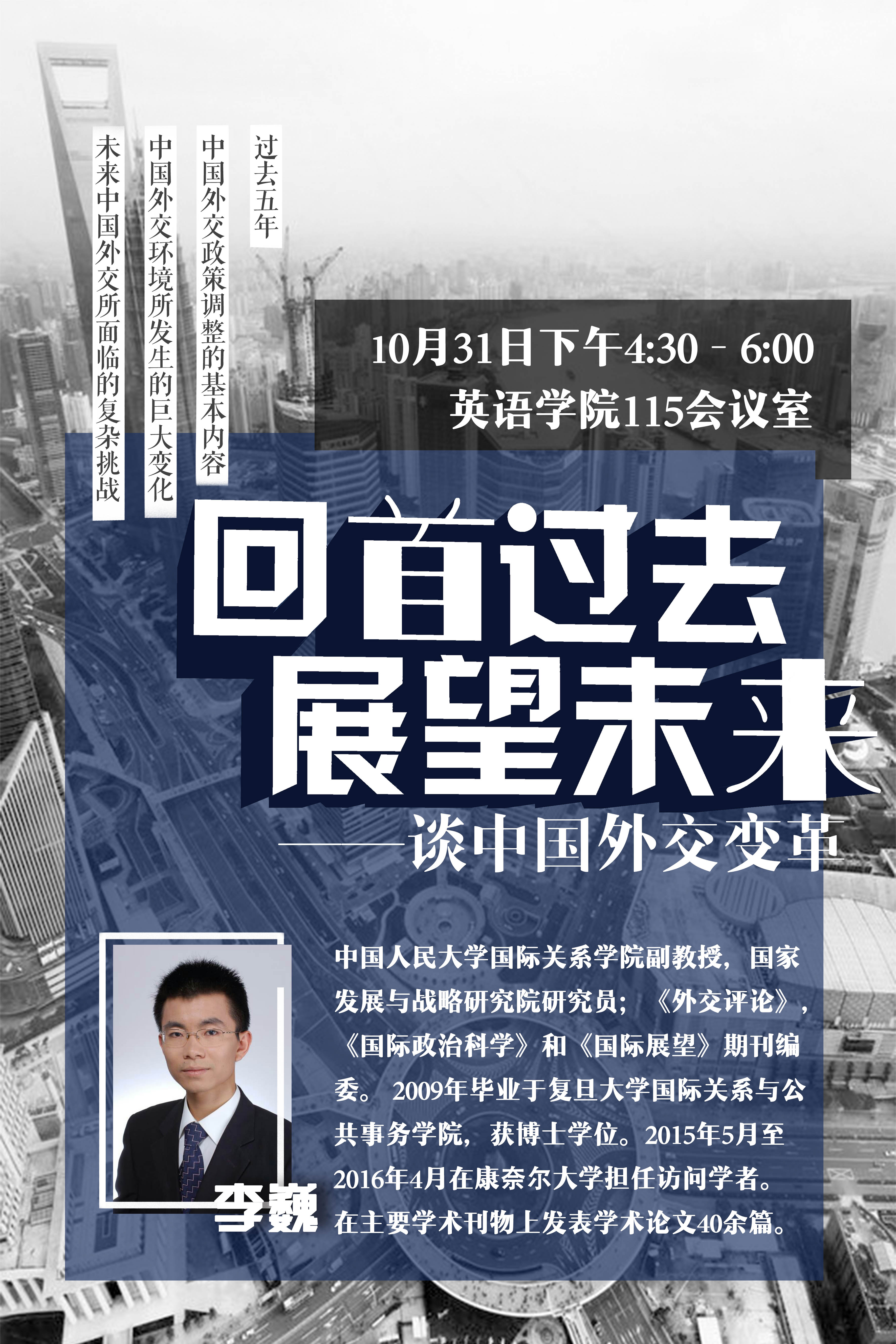 ——2017年10月-11月期间,yl23411永利组织国际问题研究青年学者系列讲座,该系列讲座是yl23411永利谢韬教授主持的“新型国际关系构建下的中美关系研究”青年创新团队项目的一部分,旨在促进项目成员与国内国际关系研究领域优秀青年学者之间的学术交流,激发北外师生在国际关系研究领域的学习热情。