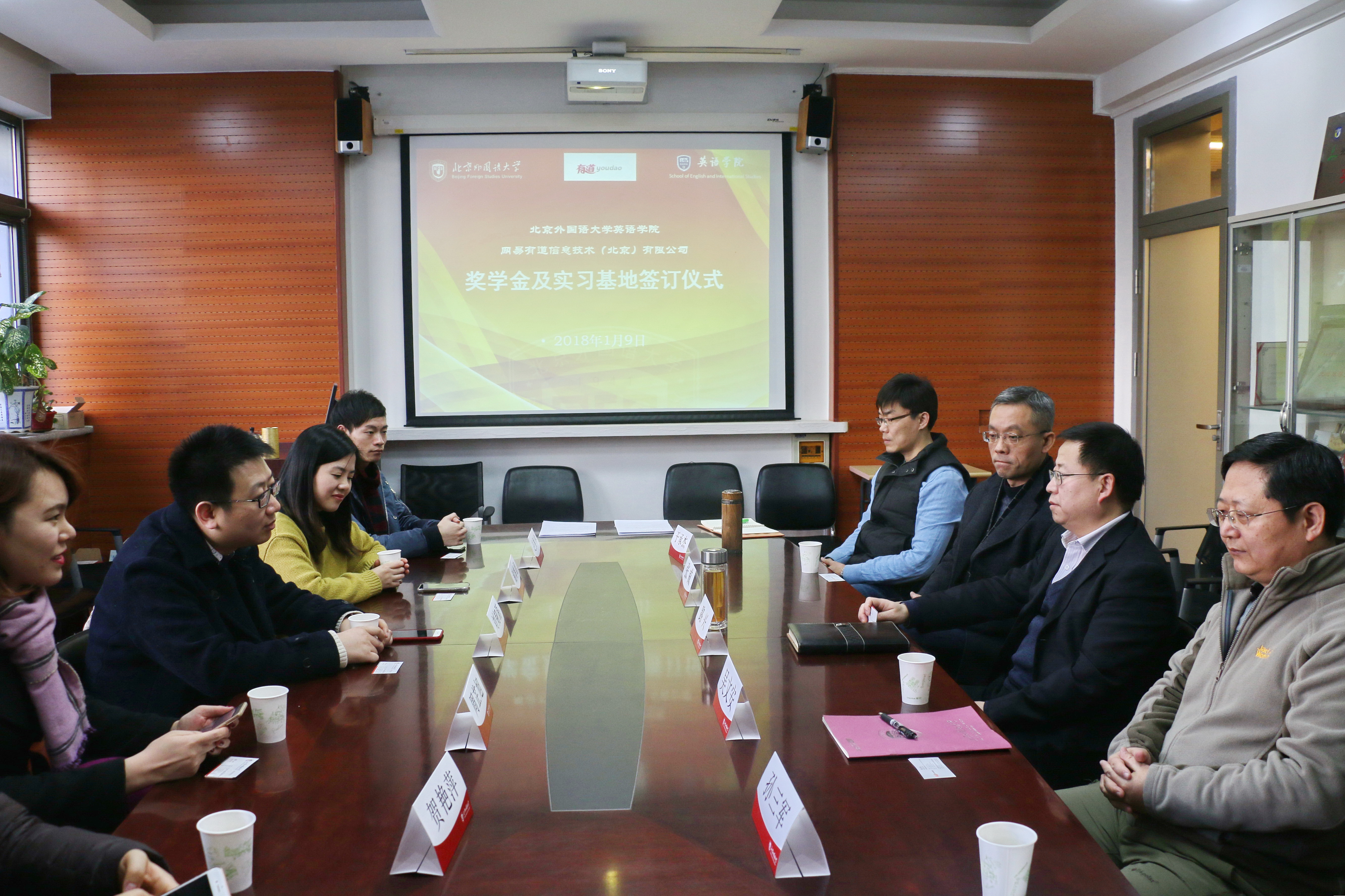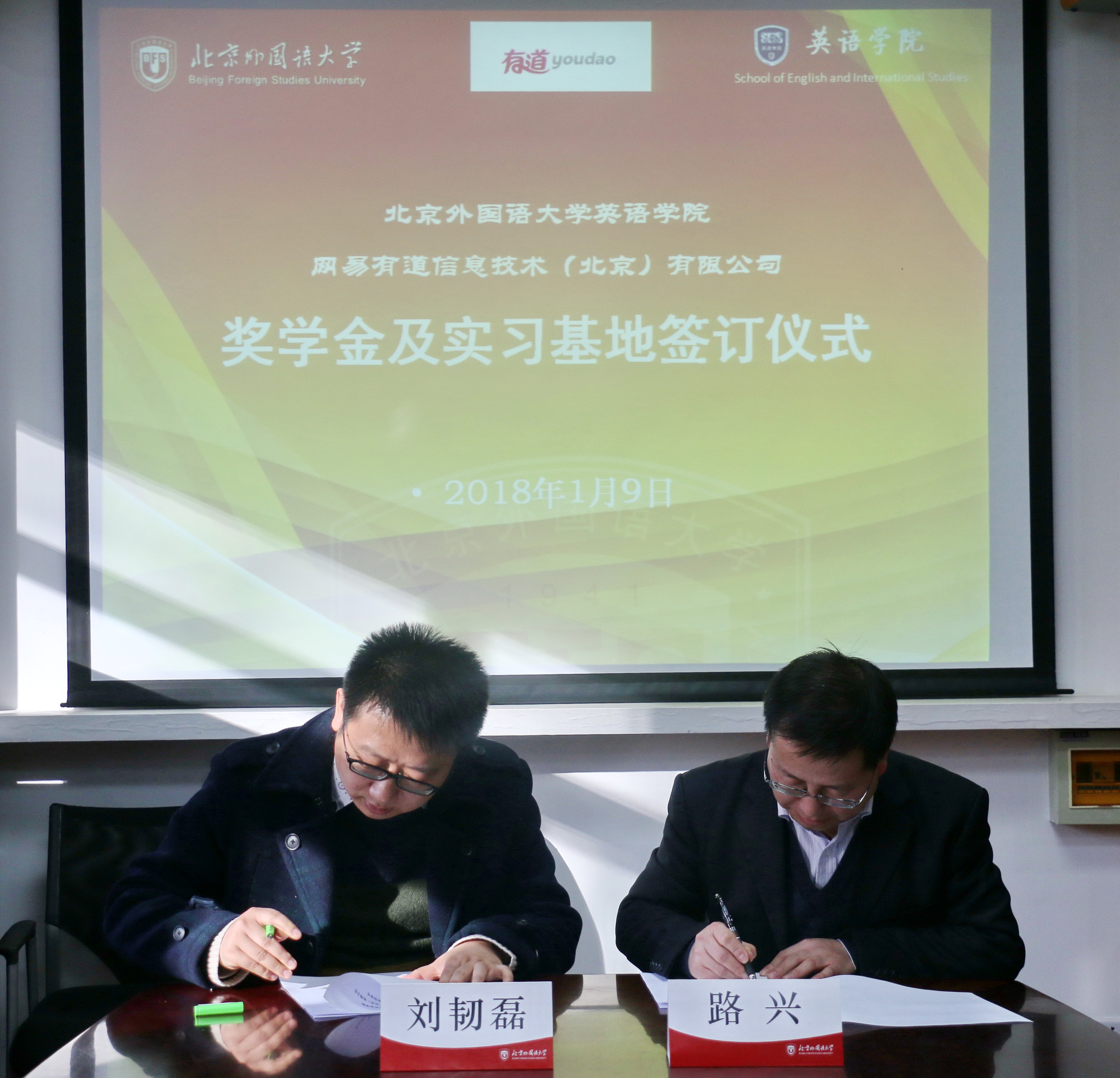 ——1月9日下午,网易有道信息技术(北京)有限公司与yl23411永利签署“有道翻译奖学金”及yl23411永利官网网易有道翻译实践实习基地协议。有道副总裁刘韧磊,人工翻译总经理谢婵娟,教育战略合作总监周芷旭,公关经理贺艳萍,市场经理赵振华出席仪式。公司党总支书记路兴,翻译系主任张威,翻译系副主任吴文安,MTI中心主任孙三军及辅导员于承杰参加。