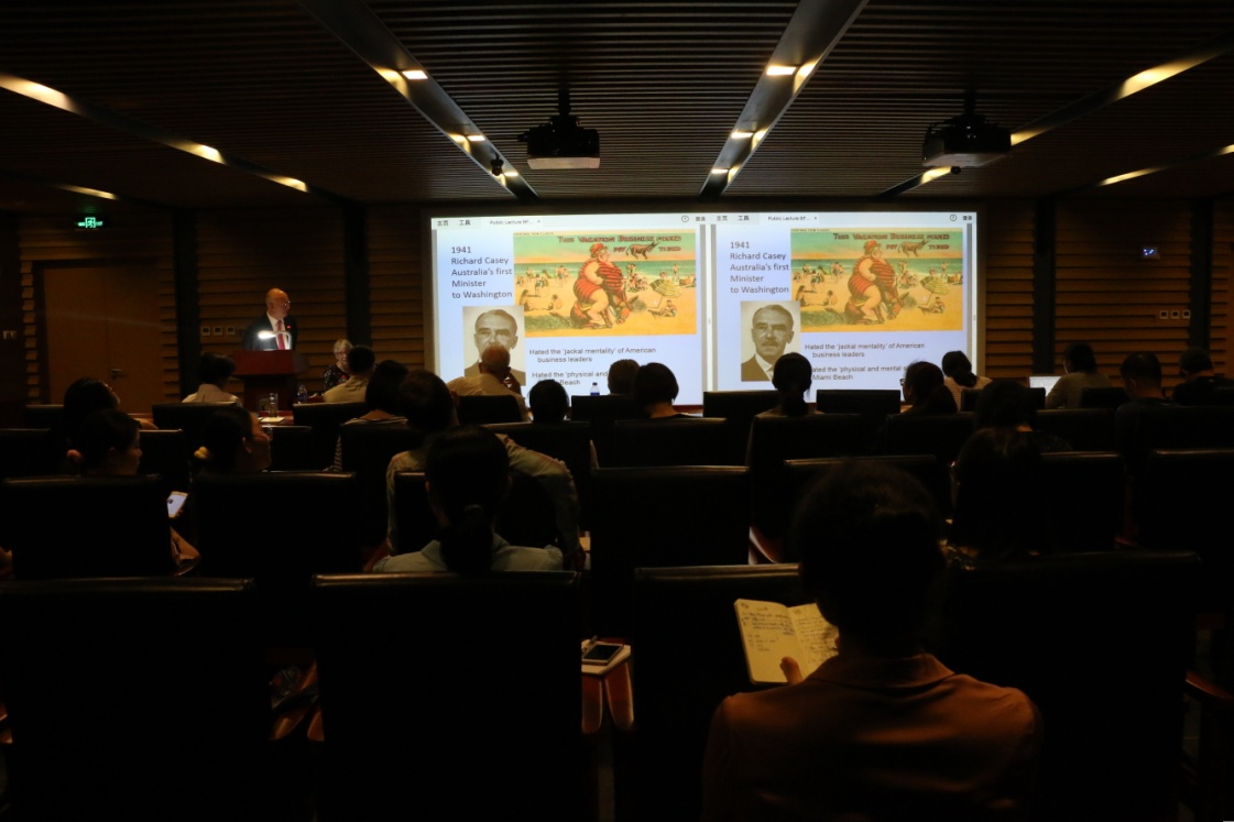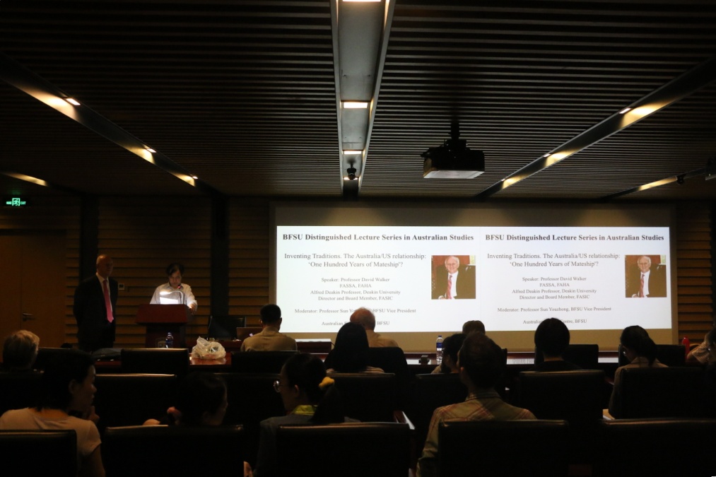 ——5月15日晚7点“北外澳研大讲堂”(BFSU Distinguished Lecture Series in Australian Studies)第一讲在北外图书馆四层学术报告厅隆重举行,公司客座教授、澳大利亚社会科公司院士、澳大利亚人文科公司院士、迪肯大学荣休教授大卫•沃克(David Walker)作了题为“澳美关系:100年的伙伴情谊?”(The Australia US Relationship: One Hundred Years of Mateship?)的讲座。讲座由yl23411永利官网澳研中心主办,yl23411永利官网副董事长孙有中教授主持。
