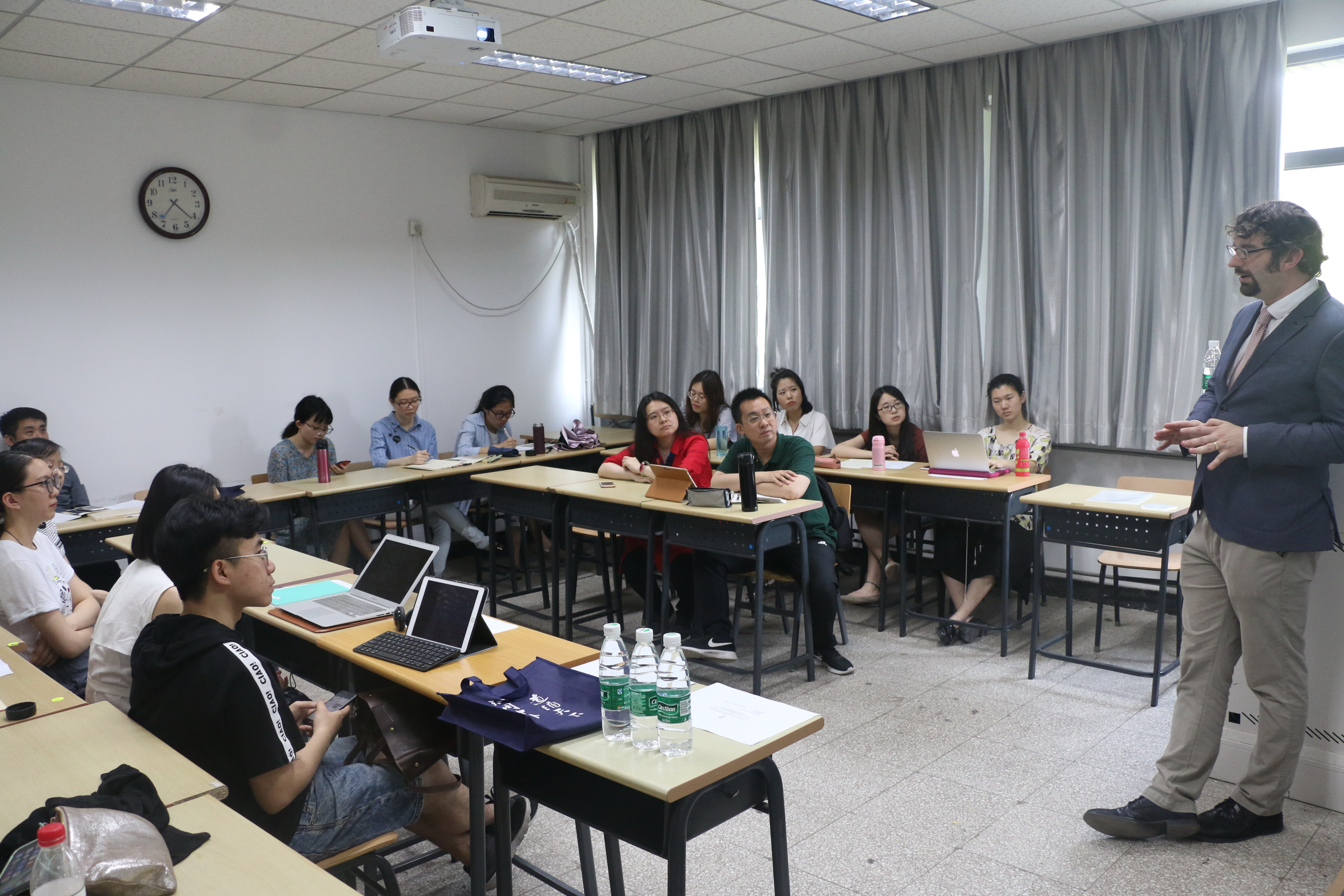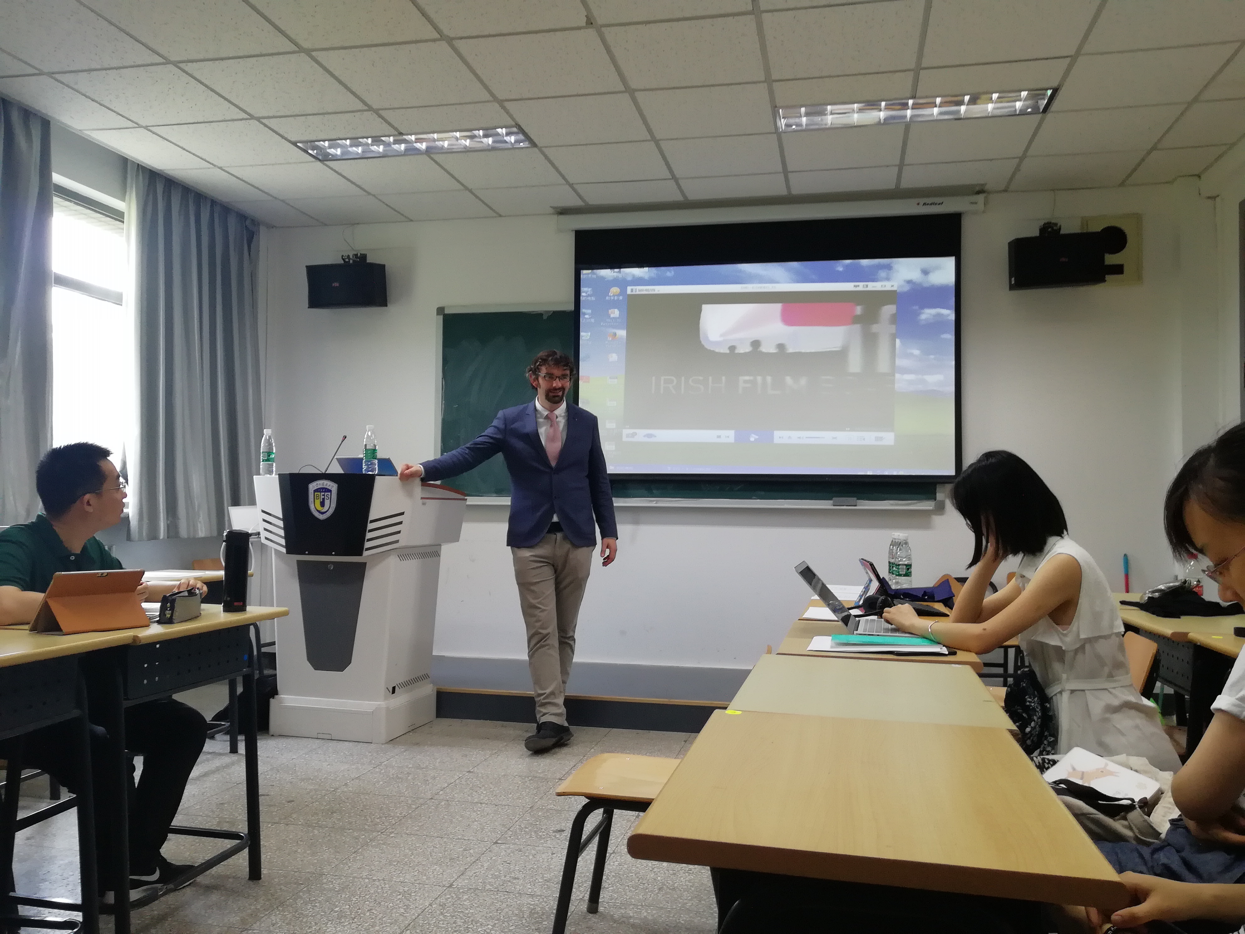 ——为纪念《复活节协议》签署20周年,5月25日下午爱尔兰研究中心特邀爱尔兰导演Maurice Fitzpatrick携其新作《以和平之名:约翰•休谟在美国》在英院309教室进行学术讲座,活动由英国研究中心、爱尔兰研究中心主任王展鹏主持,英研及爱研员工参加。
