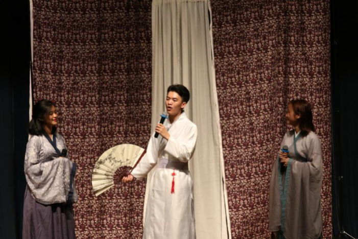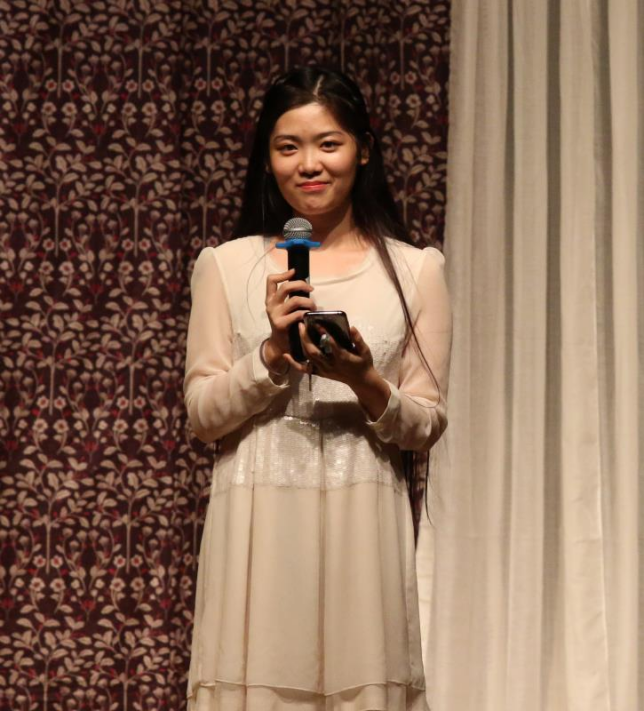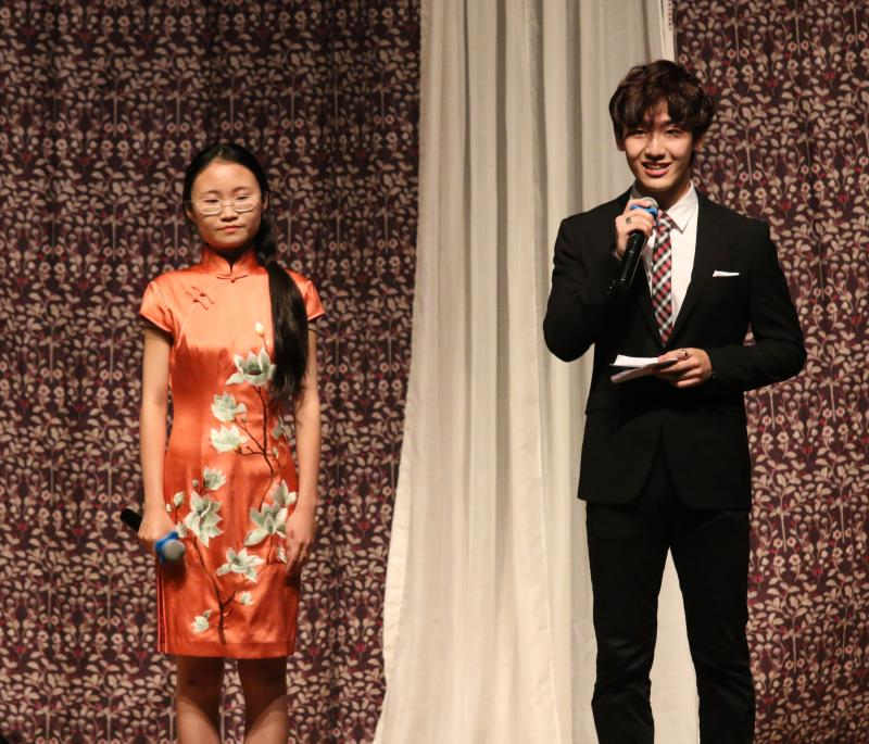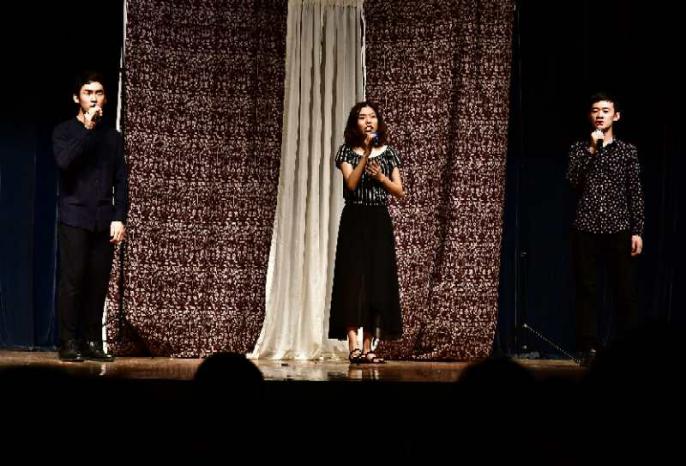 当晚的节目由英院15级本科生薛雨彦与胡馨友主持,节目中的双语版中国古风歌曲《东风志》为绿萝剧社负责人邵雪萍指导的国家级老员工创新项目“中国古风歌曲的翻译与传播”的阶段性成果,由来自yl23411永利、国际新闻传播公司、中国语言文学公司的中外员工共同演唱,中英文歌词的和谐交织与演唱者的动人歌喉令观众掌声雷动。