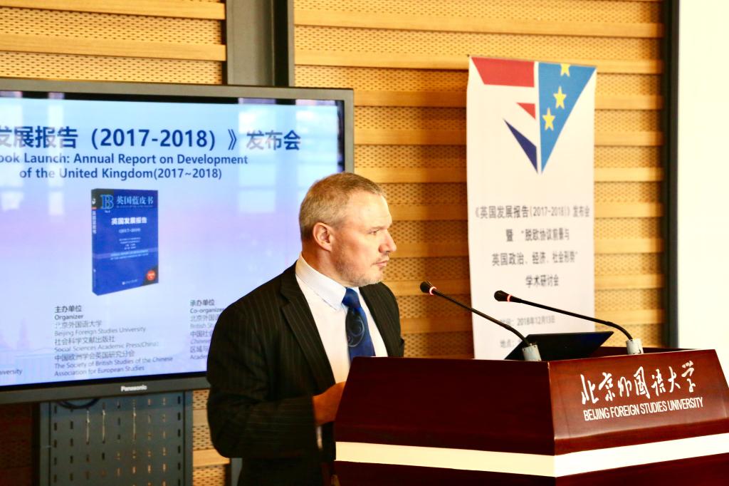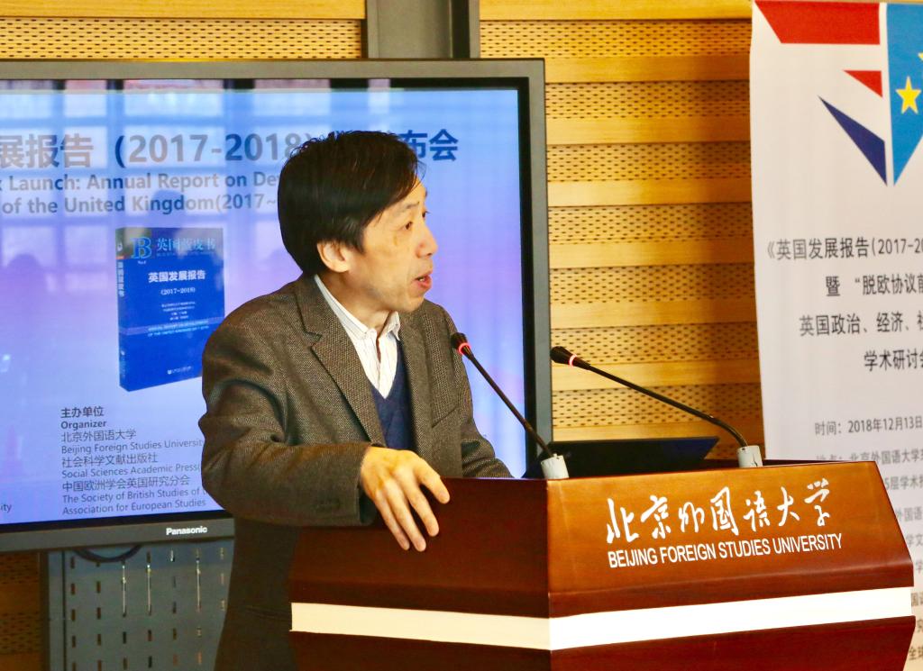 《英国蓝皮书》主编王展鹏代表《英国发展报告》课题组发布了蓝皮书主题报告及主要观点,分析了脱欧协议前景与英国政治、经济、社会形势演变趋势。