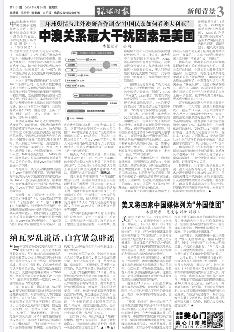 6月24日,公司澳大利亚研究中心同《环球时报》旗下舆情调查中心合作,启动国内首个“中国民众看澳大利亚”民调项目,中澳多家主要媒体进行报道。